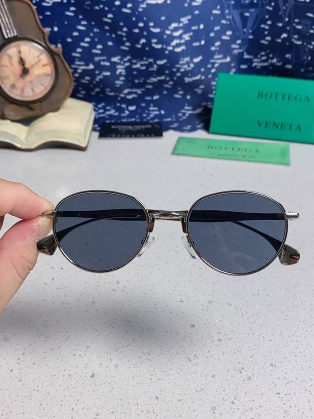 Bottega Veneta European and American style oval small frame sunglasses, metal frame, cross-border style, high-end, light luxury sunglasses for men and women, Bv1396