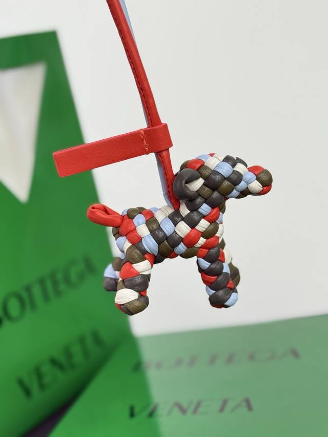 This Bottega Veneta Bv woven puppy charm is entirely handmade from tubular lambskin. Every weave detail reflects the artisan's care and ingenuity.