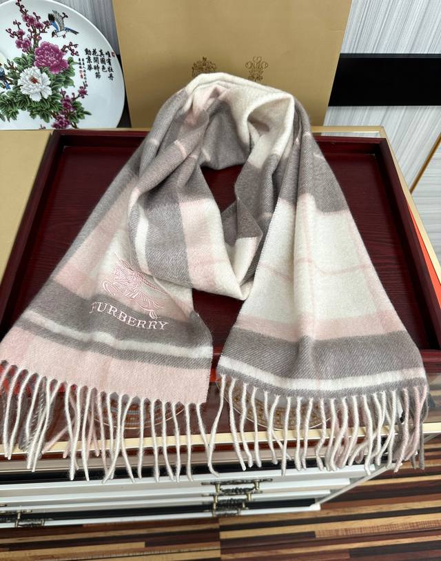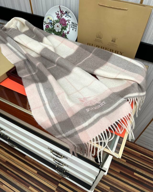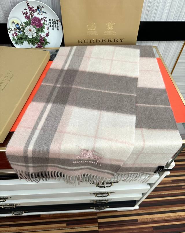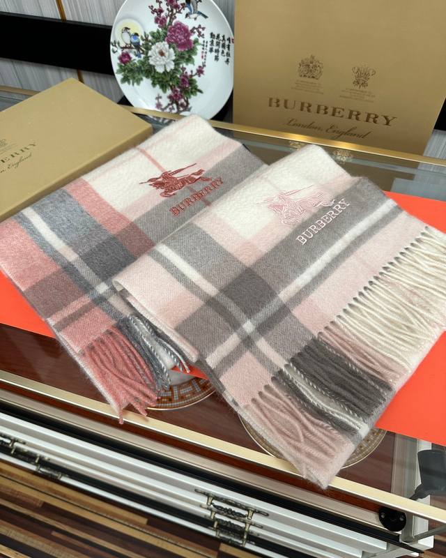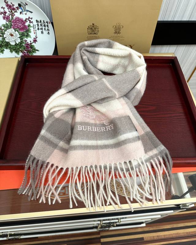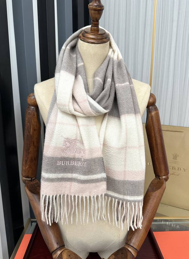 110% Cashmere 2025 Burberry Embroidered Horse Design. Made with top-quality Inner Mongolian cashmere, this latest unisex design is a highly recommended couple's style. The classic plaid pattern is timeless, incredibly warm, soft, and gentle on the skin. The classic Burberry plaid design is so beautiful, grab yours now! Unisex style; men and women can choose their preferred color. Material: Cashmere. Size: 32X180.
