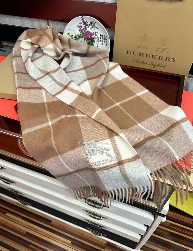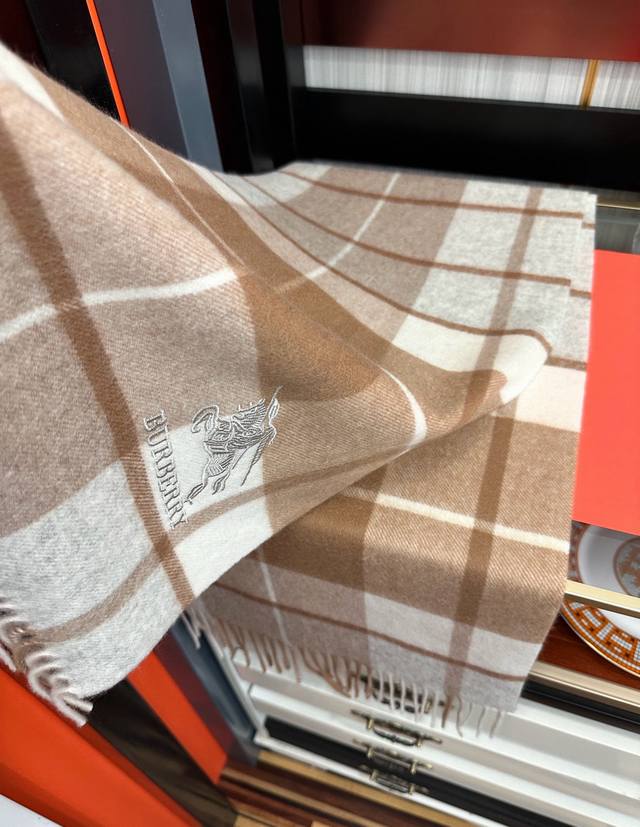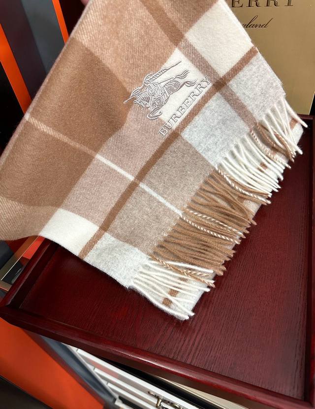 110% Cashmere 2025 Burberry Embroidered Horse Design. Made with top-quality Inner Mongolian cashmere, this latest unisex design is a highly recommended couple's style. The classic plaid pattern is timeless, incredibly warm, soft, and gentle on the skin. The classic Burberry plaid design is so beautiful, grab yours now! Unisex style; men and women can choose their preferred color. Material: Cashmere. Size: 32X180.