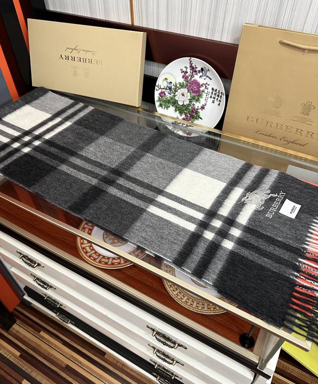 110% Cashmere Burberry 2025 Couple Scarf - The hottest item! Made with Inner Mongolian cashmere, this men's and women's scarf is absolutely gorgeous! It has a refreshing feel, is incredibly soft and comfortable to the touch, and is fantastic! The exquisite logo embroidery adds a touch of high-end elegance. A must-have! Grab yours now