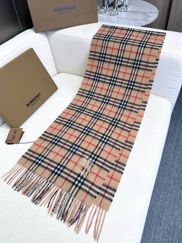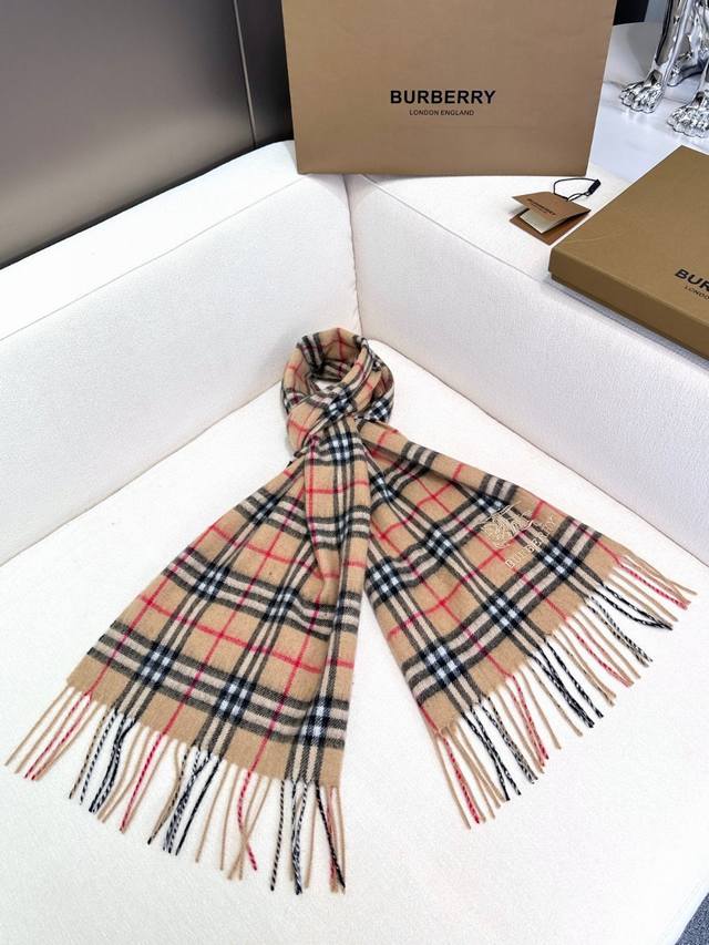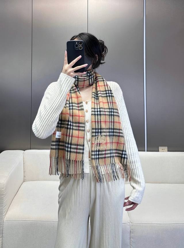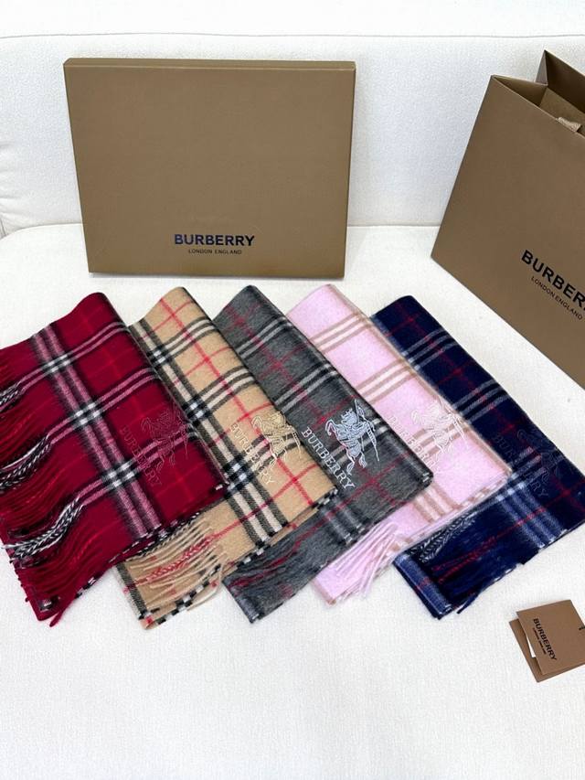 A highly recommended Burberry official website newest check pattern horse pattern. Made of top-grade cashmere, it's incredibly warm, soft, and skin-friendly, and won't irritate your neck. Classic Burberry check design, unisex, couple style. Size: 32*192cm. Unisex style. Men and women can choose their favorite color. Everyone should own one! Five colors available.