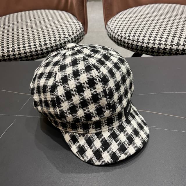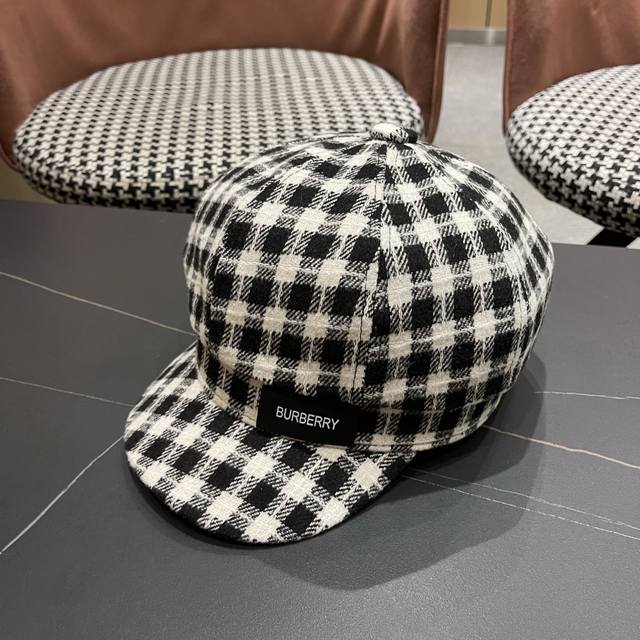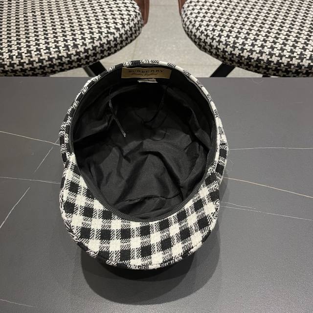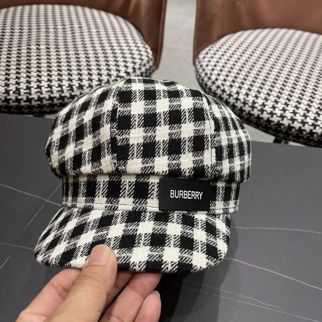/ Burberry 2025 Autumn and Winter Plaid Octagonal Hat Shows Face Small Beret Stud