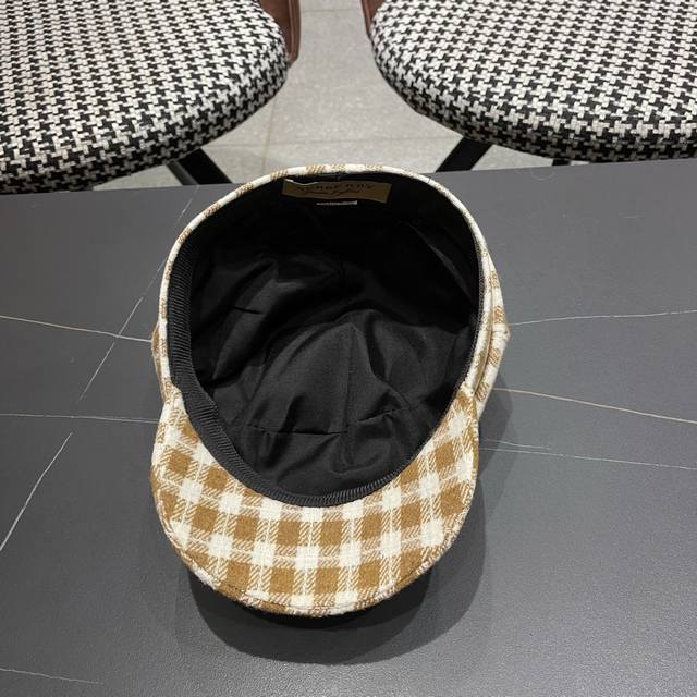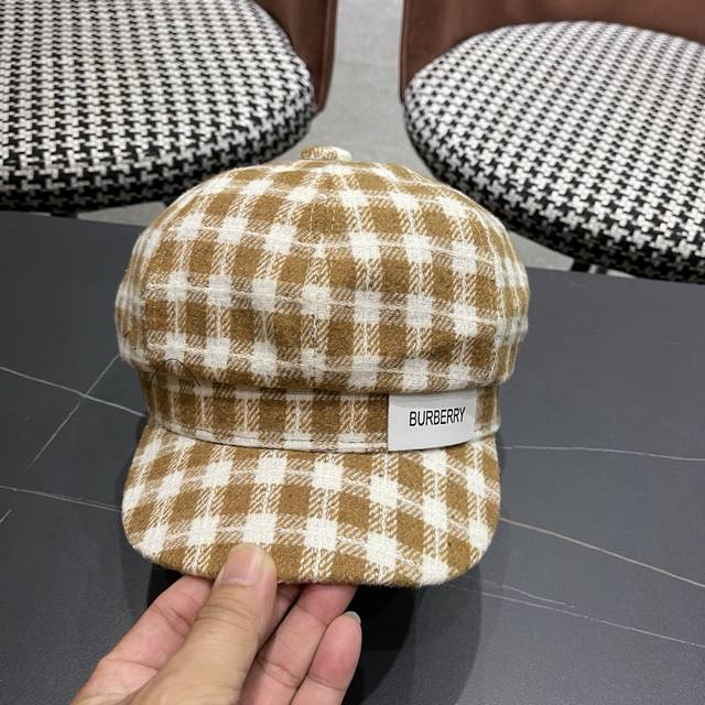 / Burberry 2025 Autumn and Winter Plaid Octagonal Hat Shows Face Small Beret Stude