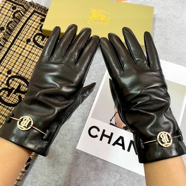 Burberry 2025 Autumn/Winter New Top-Tier Original Women's High-End Lambskin Gloves, 100% Imported Lambskin with Cashmere Lining for Warmth and Comfort. The leather is glossy, full, soft, and delicate with a superior feel. Recognize the unique feel of imported lambskin. Original hardware, top-notch craftsmanship, meticulous attention to detail. Authentic product, direct import level, 1:1 replica with boutique packaging. Sizes: M, L, D, D