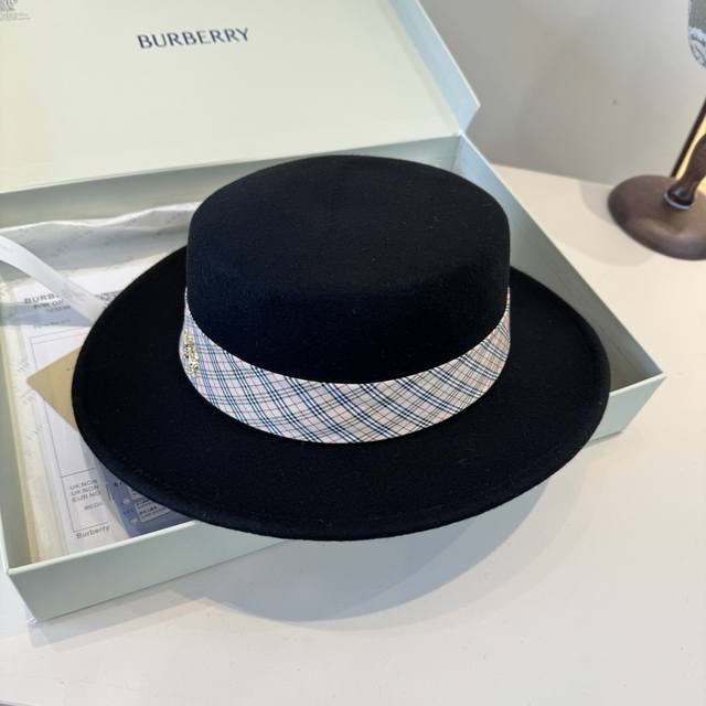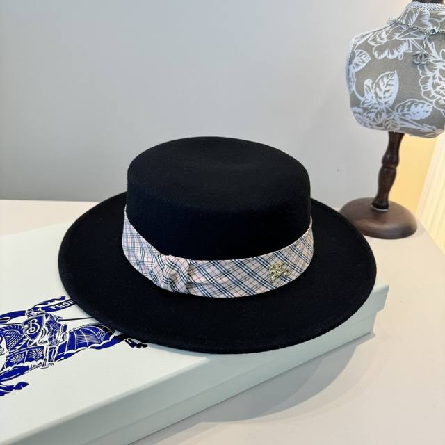 / Burberry autumn and winter new wool hat, flat top hat, 100% wool% fabric, head c
