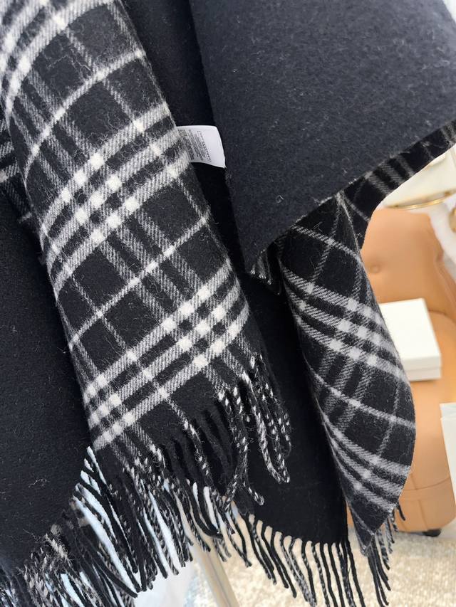 Burberry classic British check reversible cape shawl, super beautiful, this batch is all original and includes all items. Originally a custom export order, but it was detained for unknown reasons. QC did not disclose the reason for the delay. It is said that the Ab side effect is very difficult to weave and is expected to sell for over 10,000 RMB in the store. It is a practical item comparable to a cashmere coat, and it is reversible. Who else would you buy if not this? It has original labels and tags with anti-counterfeiting features. It is 95% cashmere and 5% wool, meeting international standards. More than 95% is pure cashmere. This order alone was arranged for spinning and weaving as early as April. It is a fake and you can't even get it if you want to. Look at the details such as the genuine corner binding. Those who know their stuff will take hundreds of them home and be happy. It's like getting a freebie. Size: 130X150Cm. The cashmere is soft and skin-friendly.