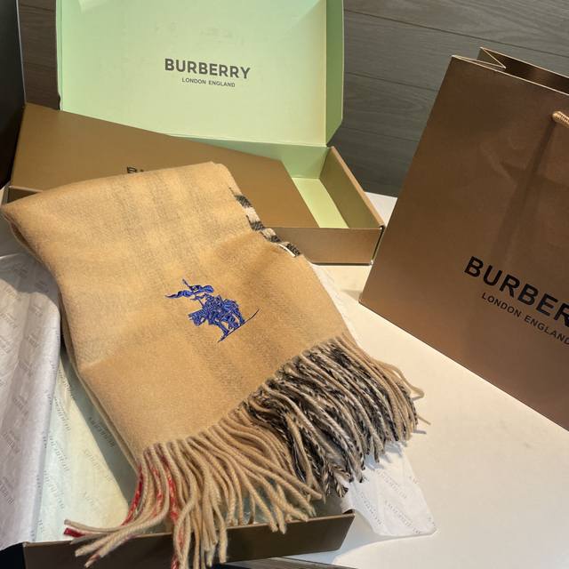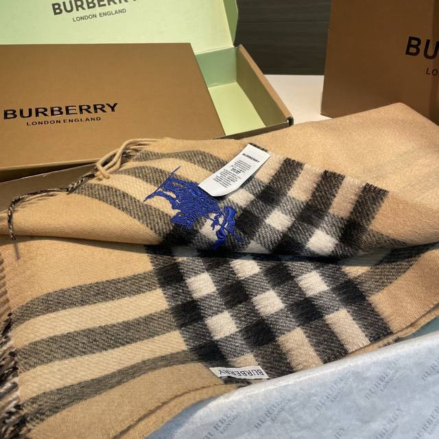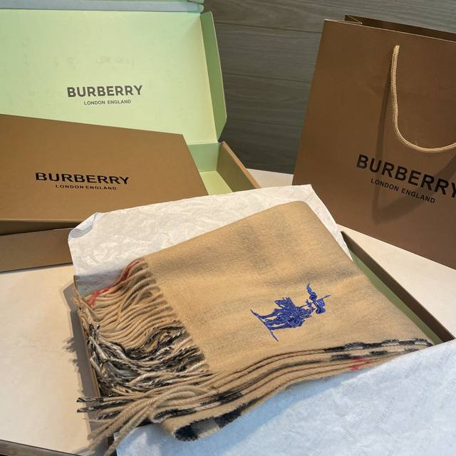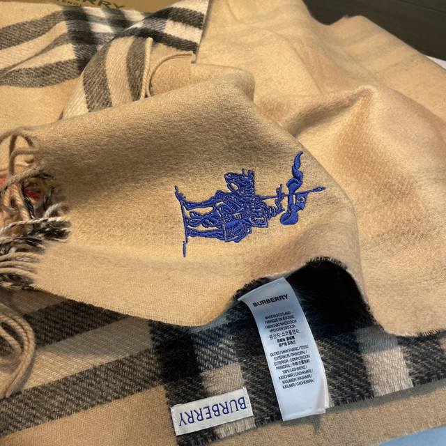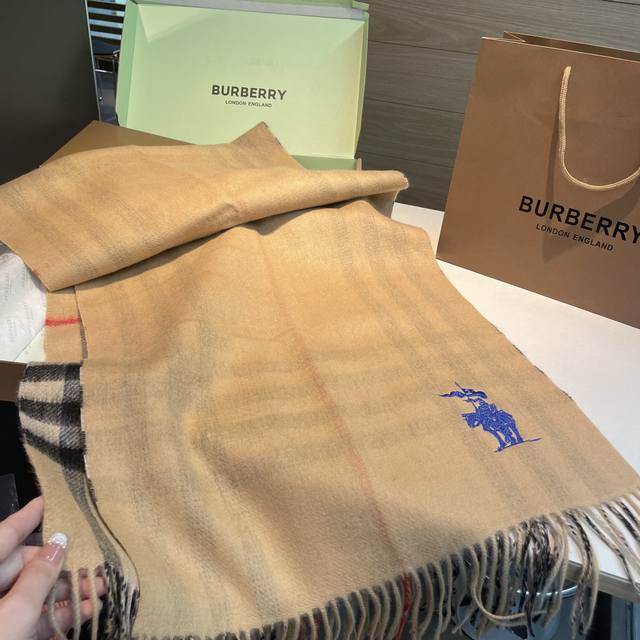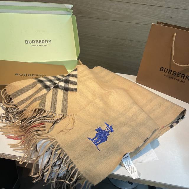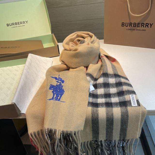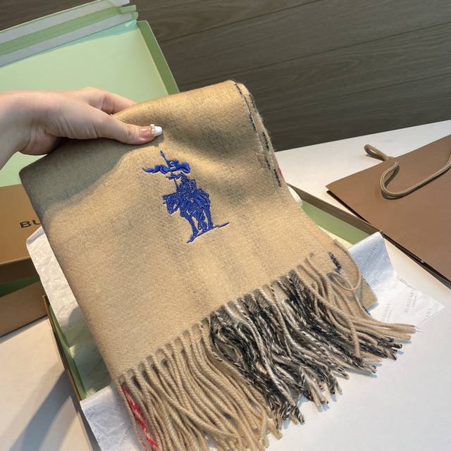 Burberry classic check, a timeless design. This BBR equestrian embroidered classic small check double-sided shawl boasts incredibly high quality and a wonderful feel. Made of 100% lamb's wool, it's a top-tier product that will absolutely amaze you. The classic check pattern paired with stylish color blocking is the highlight of this stunning piece. A must-have high-end item for autumn and winter. Size: 50*200 cm. The best value for money product; perfect for gifting or personal use.