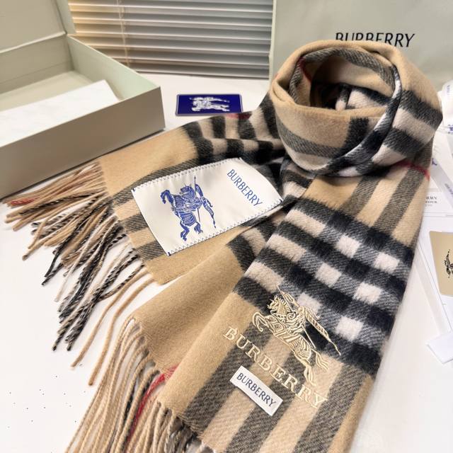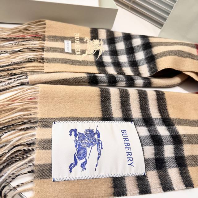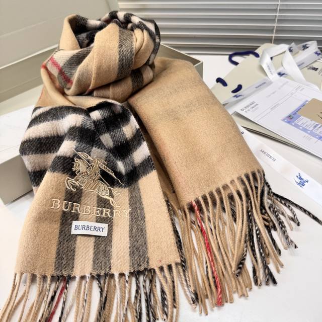 Burberry classic check, a timeless design. This BBR equestrian embroidered classic small check double-sided shawl boasts an exceptionally high-quality feel. Made of 100% lamb's wool, it's a top-tier product that will absolutely amaze you. The classic check pattern paired with stylish color blocking is the highlight of this stunning piece. A must-have high-end item for autumn and winter. Size: 60*200 cm. A top-value product, perfect for gifting or personal use.