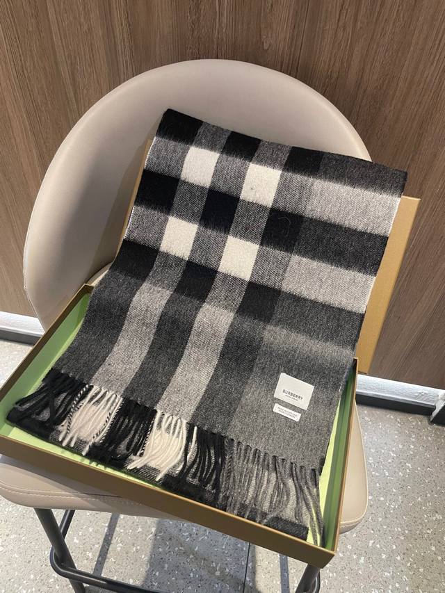 Burberry classic large check high-quality imported cashmere scarf is now available! A stunning new arrival in overseas boutiques! Men's, women's, and couple's cashmere scarves not yet available in domestic boutiques. Excellent design and fabric. A rare find with the classic logo pattern. Size: 30cm (