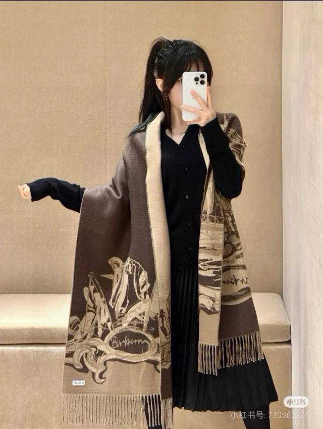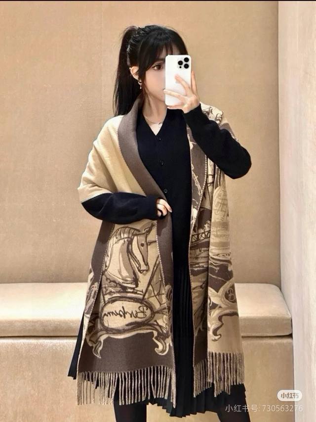Burberry: Last year's War Horse scarf was incredibly sold out. This year's double-sided British Tower Bridge jacquard cashmere scarf is definitely a hit this fall and winter. It's even more versatile than last year's War Horse scarf, so no makeup or filters are needed. It's the perfect gift for keeping warm, or as a shawl for the subway, office, or air-conditioned room! It sold out in seconds! Size: 210*47