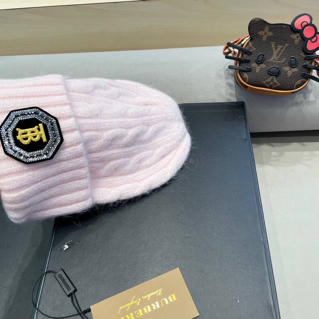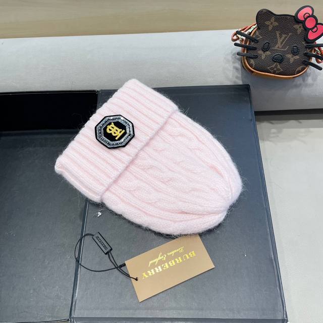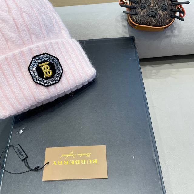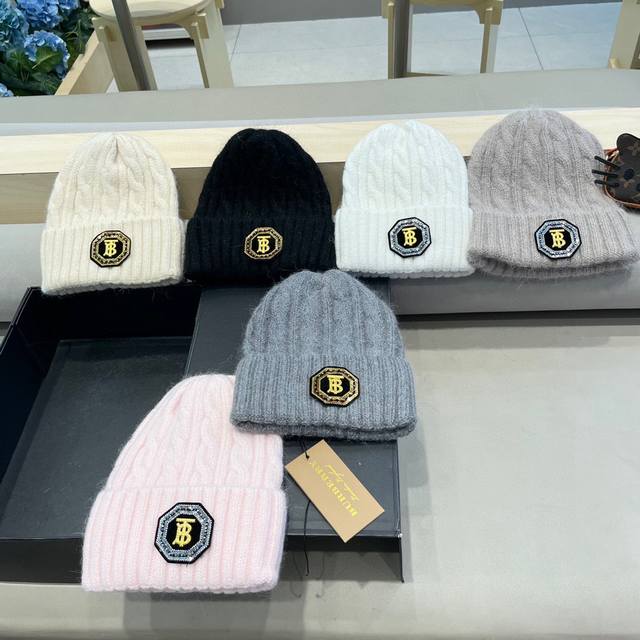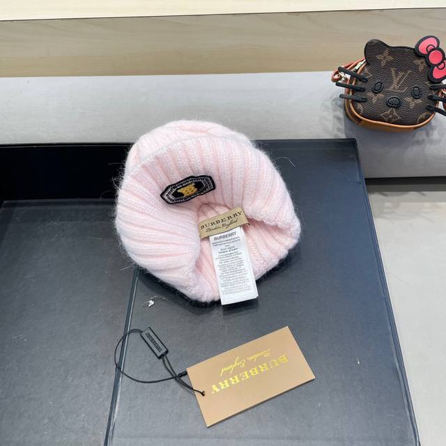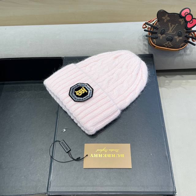 Burberry new knitted cable wool hat women's autumn and winter ear protection cold warm hat letter patch cold hat trend