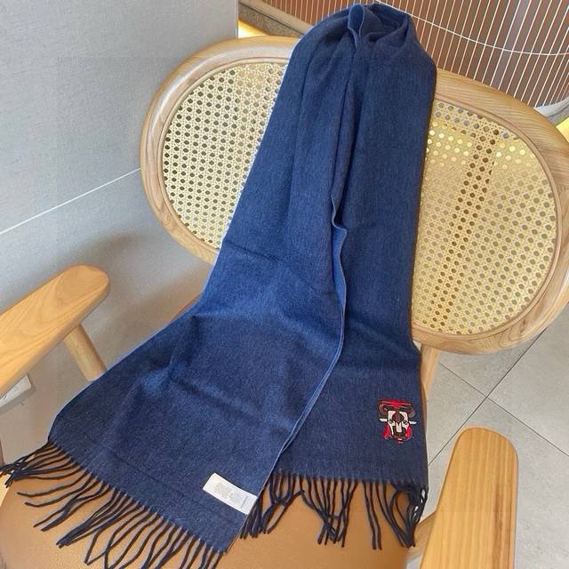 Burberry's absolute family-friendly offering. Double-woven, two different colors on each side, one scarf with two styles. Highly skilled overlocking, a unique design. The classic Tb logo is perfectly presented with the Chinese Year of the Ox, further showcasing the Burberry brand's nostalgic spirit. Selected trendy colors and understated embellishments create a sophisticated, unassuming look. Unisex style. % cashmere. Size: 35*200cm