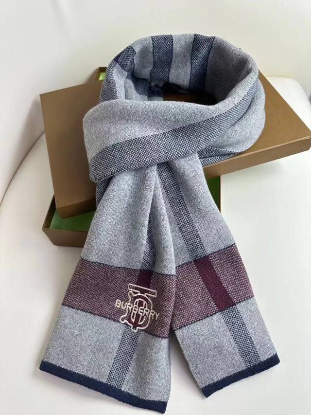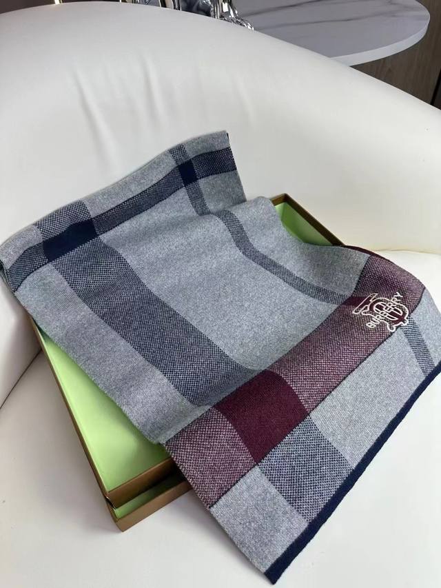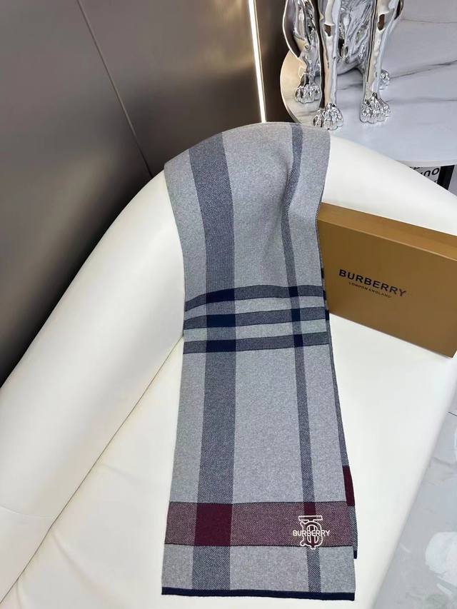Burberry's hot-selling new high-end men's scarf, Tb cashmere plaid, exclusive cow product, luxury in size, high-end quality, only with ultra-high cashmere quality is favored by this brand. This boutique is a rare scarf knit on the market, with low-key luxury color matching, very soft and comfortable, and sold as a good product with fewer pieces. % Imported knitted cashmere size: *32