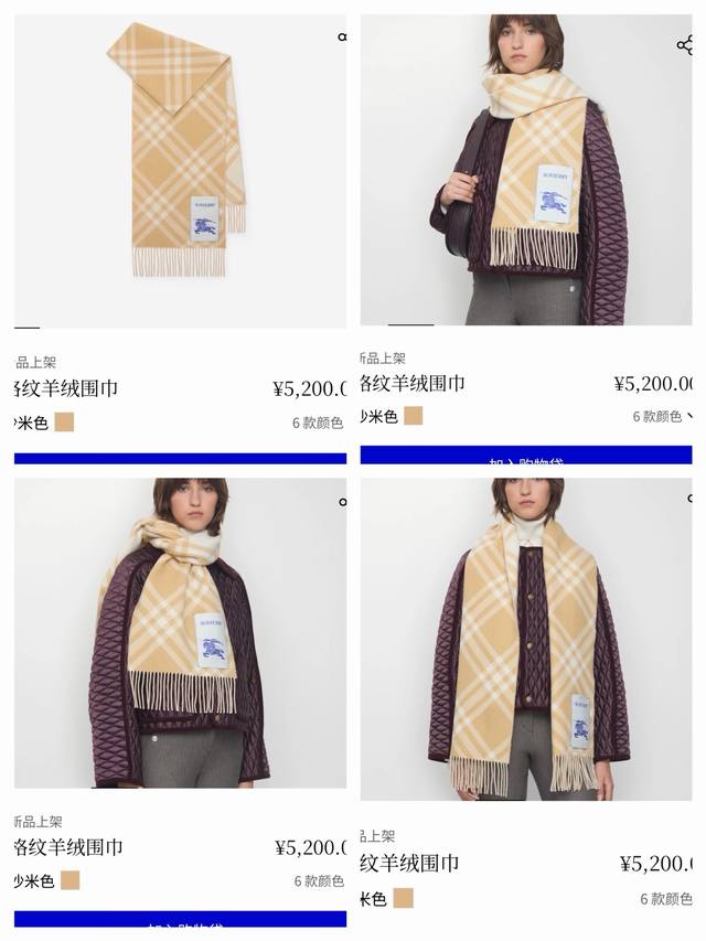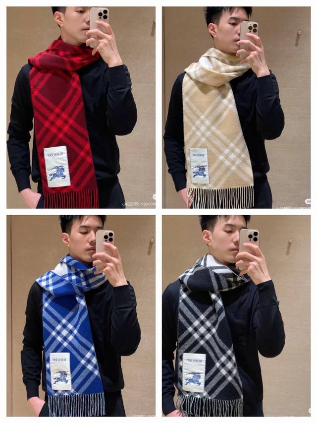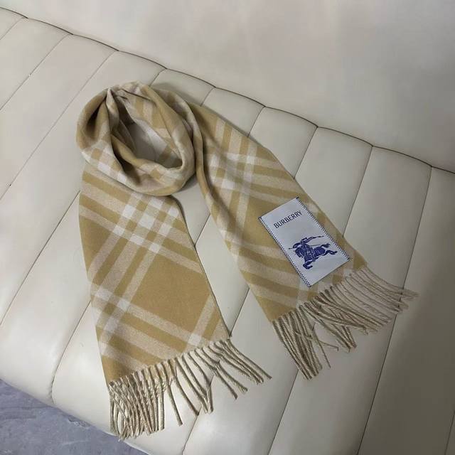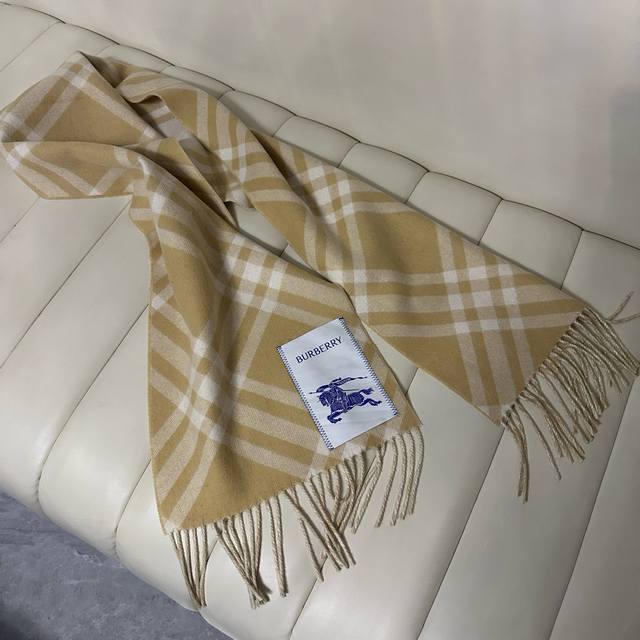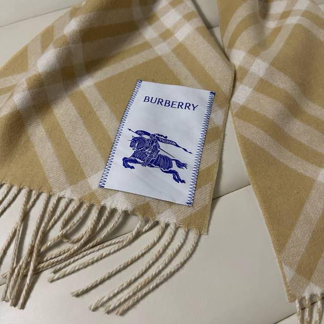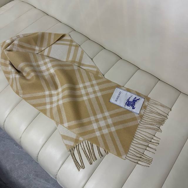 Burberry's new Scottish plaid cashmere scarf. Following the plaid scarf trend popularized by Jun Ji-hyun, Burberry has released another masterpiece. This new Burberry fringed plaid cashmere scarf is absolutely stunning, perfect for couples! It's incredibly beautiful and sold out as soon as it hit the shelves. It's so popular that you couldn't even get a pair without queuing up. This understated luxury Burberry scarf is incredibly versatile and goes with everything. It's unisex, and the more you look at it, the more you love it. The more you look at it, the more fashionable it becomes, and the more you appreciate the Scottish style. This double-sided, two-tone scarf is soft and skin-friendly, decorated with the new season's finely woven plaid pattern, meticulously crafted for a soft touch and brushed surface. Super easy to match. Dimensions: 30 x 168 cm, tassels: 8 cm x 2. % Cashmere (