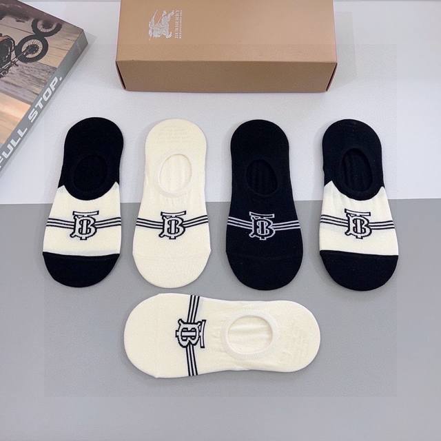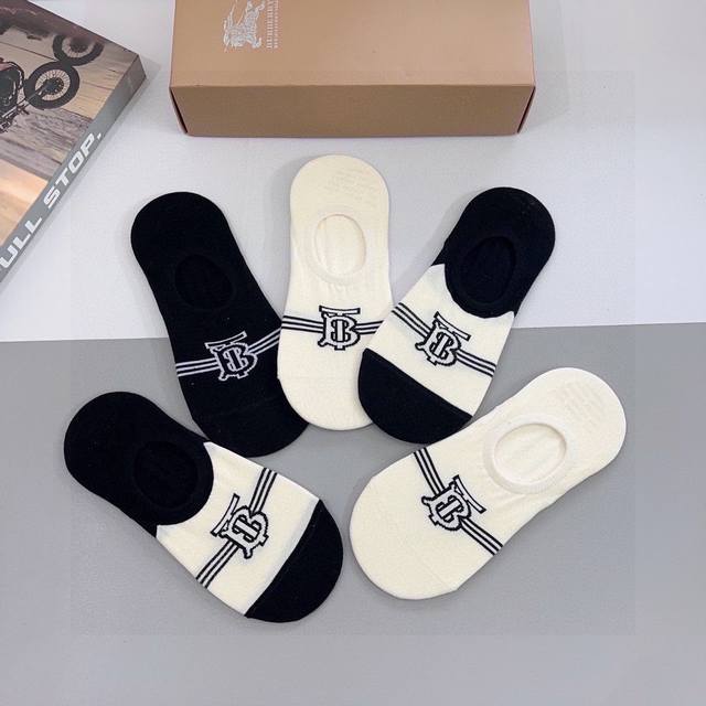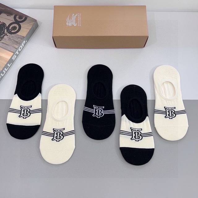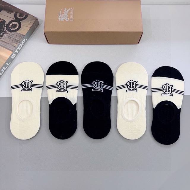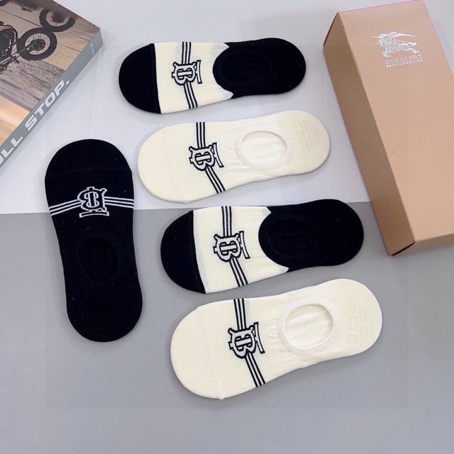 Comes with a box of 5 pairs of Burberry boat socks. Super popular small items, must-have hot items for fashionistas, personalized and fashionable, versatile style! You deserve it! Combed cotton fabric, super soft material, comfortable and breathable, fashionable and versatile style