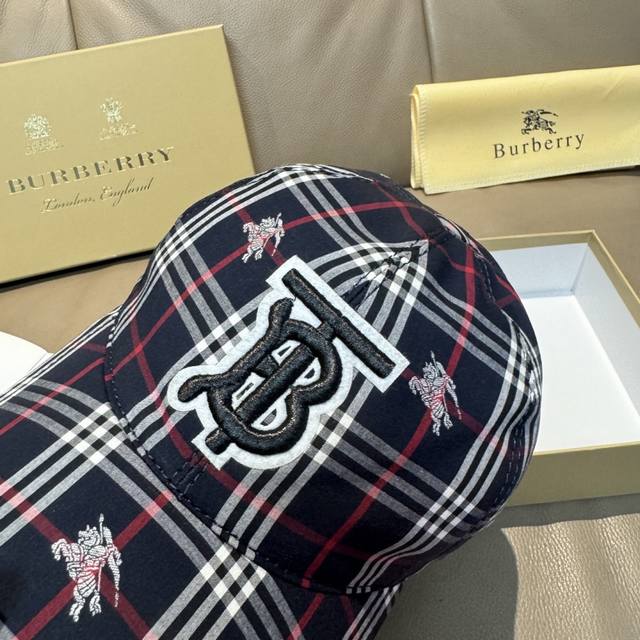 comes with a packaging bag, Burberry original baseball cap, Tb plaid warhorse, 1:1 mold customization at the counter, pure cotton fabric + first layer cowhide, light and breathable! Real product shooting, suitable for men and women.
