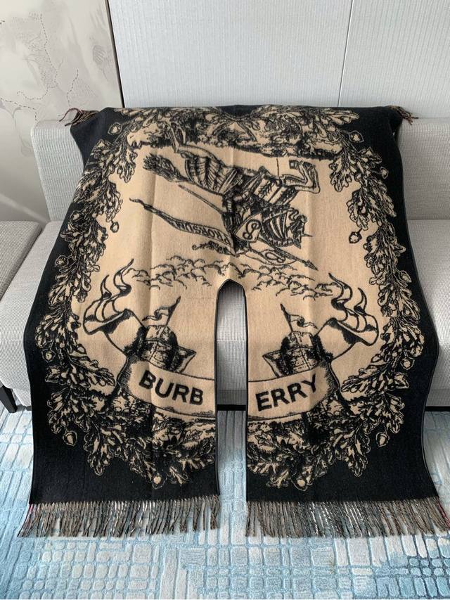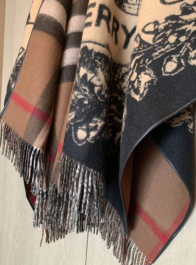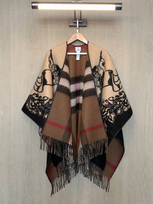 High-quality replica, genuine Burberry latest knight and horse double-sided jacquard cape, a classic among classics. This Ab-sided effect is difficult to weave, comparable to a cashmere coat. It's practical and reversible. Why buy it? Original label and hangtag with anti-counterfeiting features. 140*140cm. 95% cashmere, 5% wool, international standard. Over 95% pure cashmere. This order from boutiques started spinning and weaving in April. It's a fake; you can't match it. See the genuine corner binding and other fine details.