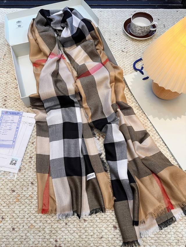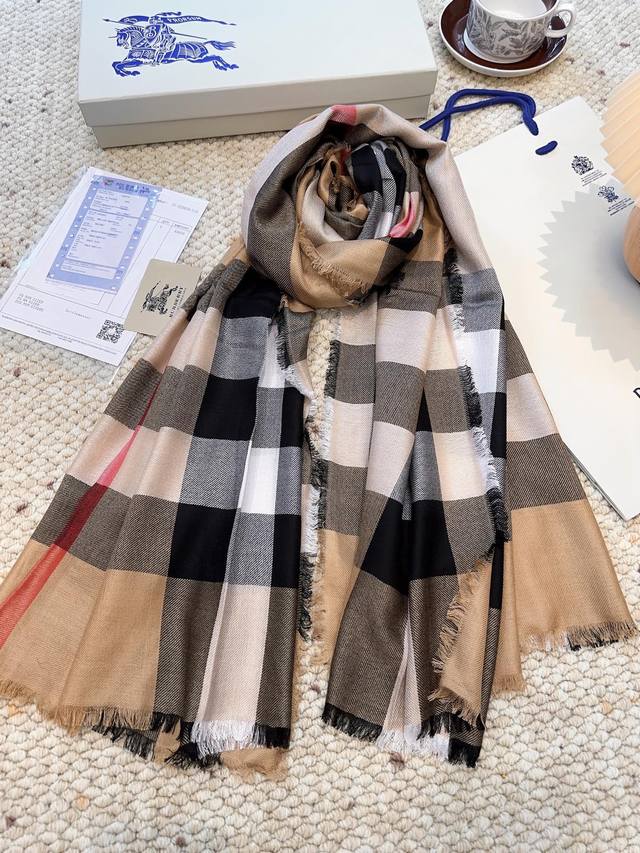 New Arrival! 2025 Burberry Formal Collection, exclusively for flagship store VIPs. Made with top-grade Scottish imported cashmere, this scarf boasts unparalleled elegance and sophistication. The simple and elegant design is anything but flashy. Cashmere scarves are arguably the highest-end item among scarves. Good products require proper care; it's a niche product, not everyone understands its value. Its excellence makes it a top choice for a tasteful lifestyle. A must-have for discerning individuals. Material: Cashmere.