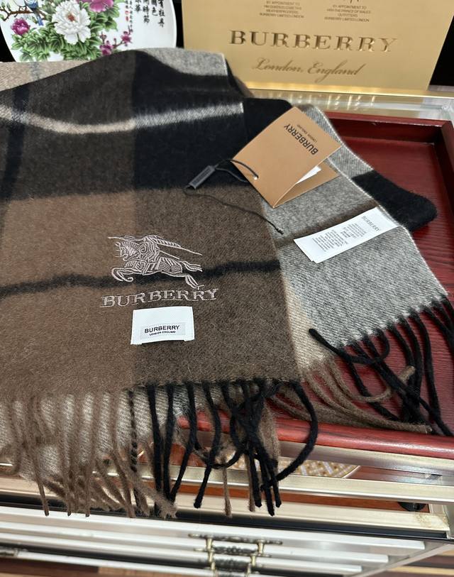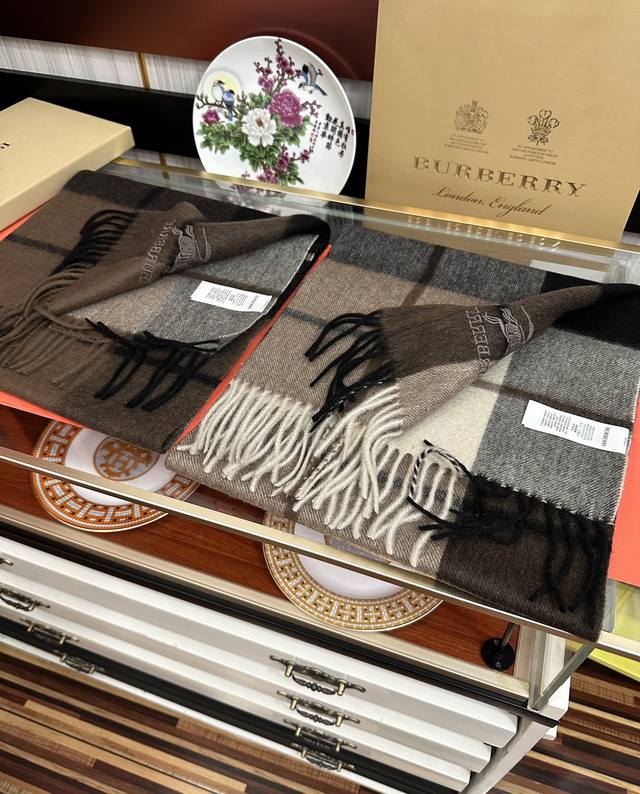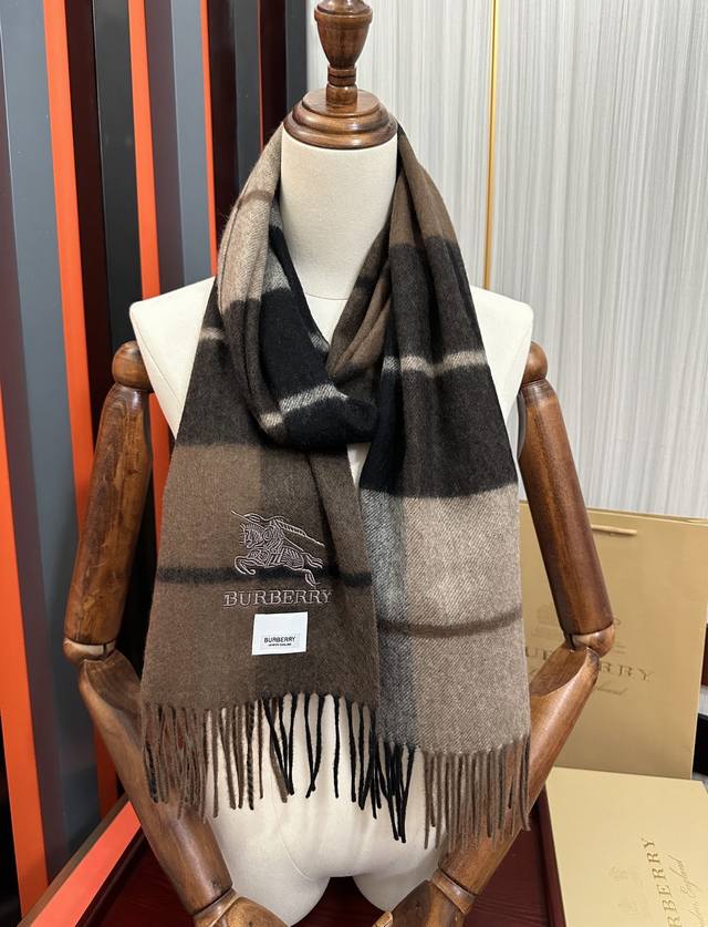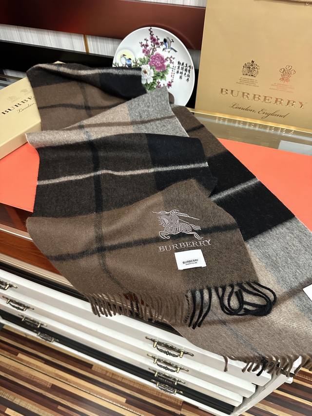 New Arrival! Burberry 100% Cashmere Scarf, Size 25, Best-Selling Item. Made with Inner Mongolian cashmere, this men's, women's, and couple's scarf is stunning! It has a refreshing feel, is incredibly soft and comfortable to the touch, and is fantastic. The exquisite logo embroidery adds a touch of high-end elegance. A must-have! Grab it now
