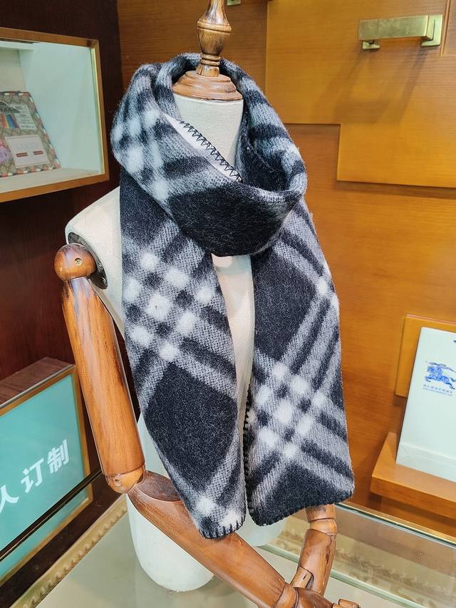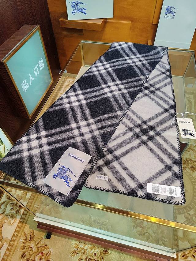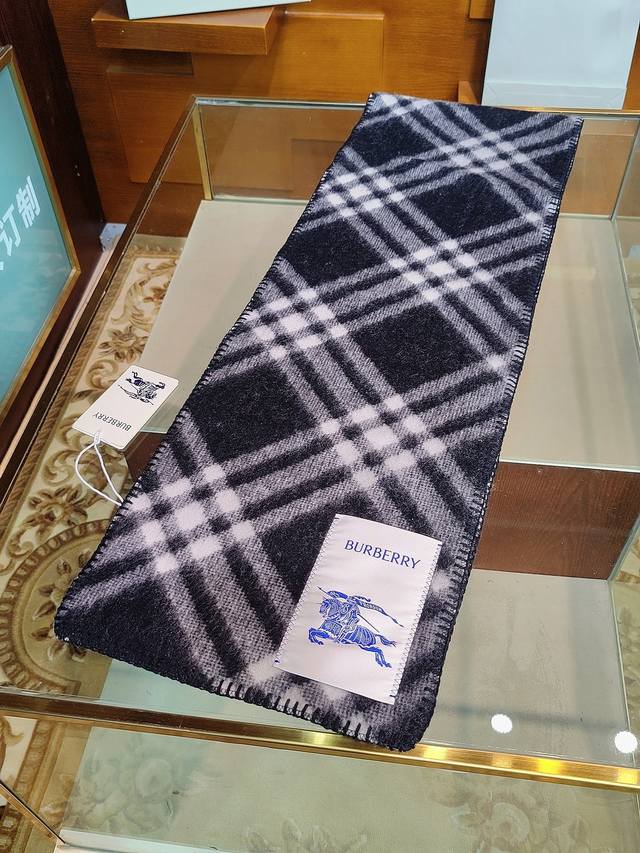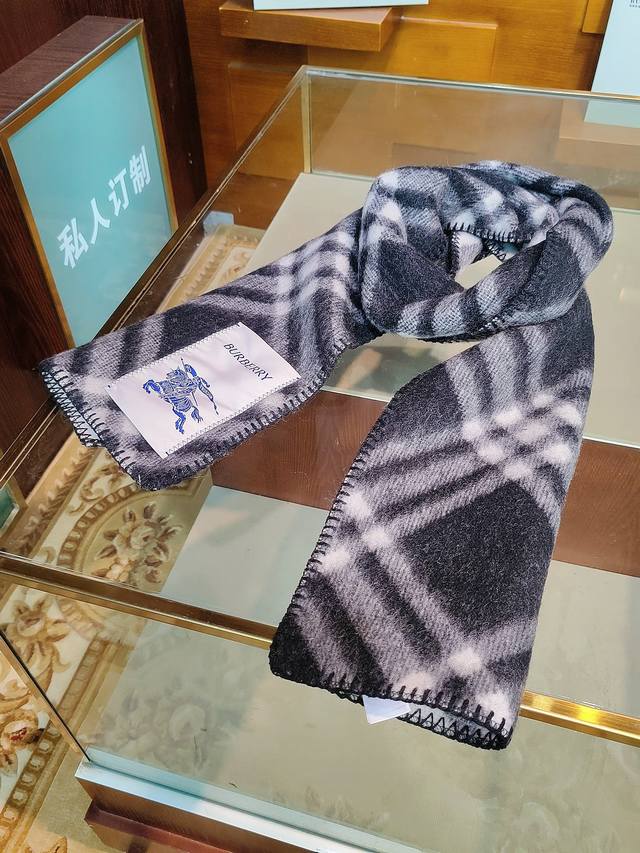 New Arrival! The latest 2025 Burberry cashmere and wool blend scarf. The craftsmanship and color scheme are clearly not something a typical factory-made product can replicate. I absolutely love this high-level sense of style; fashionable people with attitude will definitely appreciate it. Young, stylish, confident, and with attitude. Made with the tips of pure Albax cashmere goats' belly wool harvested every spring. The characteristic of this cashmere is that even after processing, it retains the essence of the original wool to the greatest extent, resulting in a unique texture. Holding the scarf feels like holding a cloud