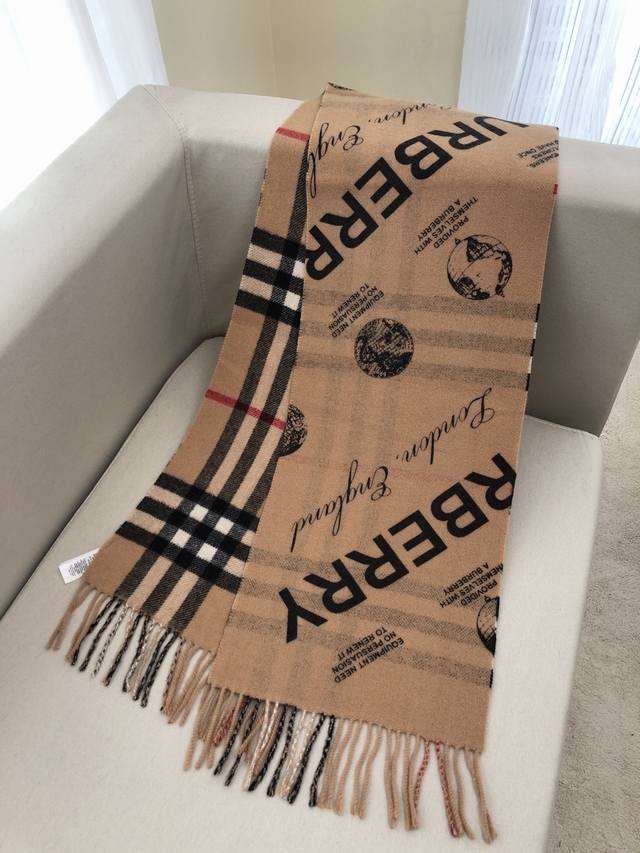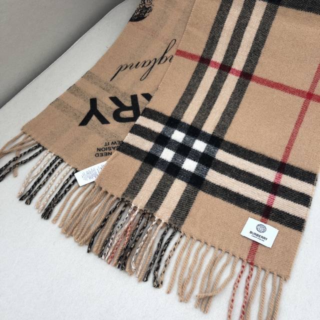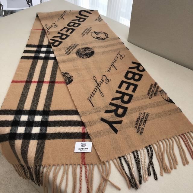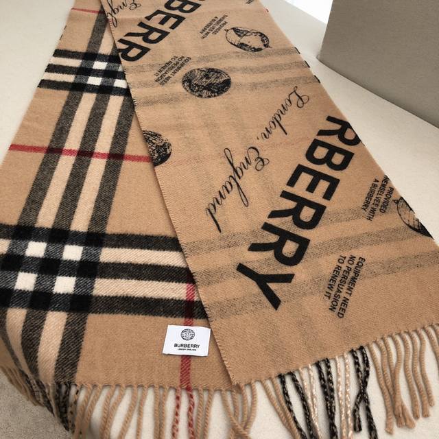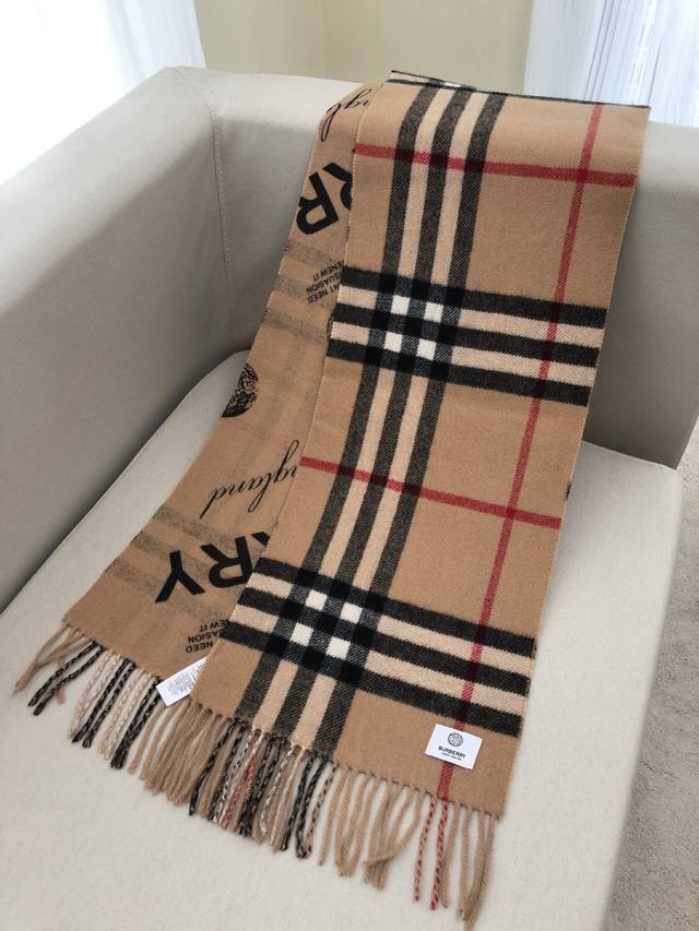 New autumn and winter series Burberry cashmere scarf for men and women, double-sided dual-use plaid with new logo, classic large plaid on one side and signature logo on the other side, distinctive contrasting color design, size: 200*36cm, 100% cashmere