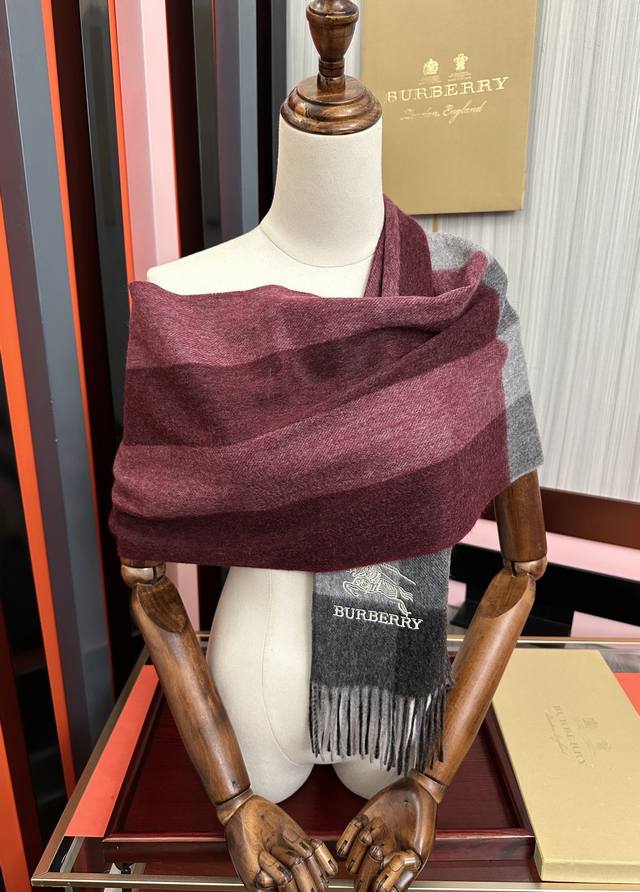 New Burberry 100% Cashmere 2025 Hottest Item: Men's and Women's Couple Scarf Made with Inner Mongolian Cashmere. It's so beautiful and refreshing! The fabric is soft and comfortable, and it's fantastic! The exquisite logo embroidery adds a touch of high-end elegance. A must-have! Grab it now! Truly a great product. Size: 30X180. Material: Cashmere.