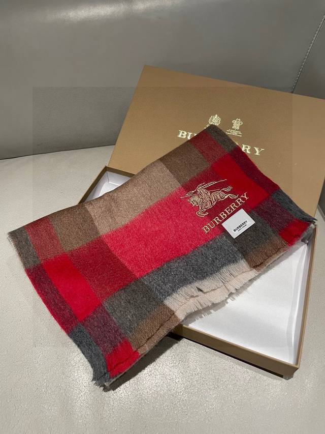 New Burberry Men's and Women's Cashmere Classic Check Shawl Scarf - A high-end product with classic logo embroidery. A top-tier design from a top fashion brand. You'll understand once you hold it in your hand