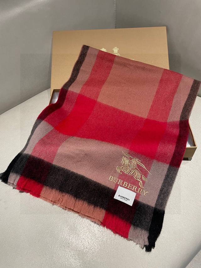 New Burberry Men's and Women's Cashmere Classic Check Shawl Scarf - A high-end product with classic logo embroidery. A top-tier design from a top fashion brand. You'll understand once you hold it in your hand