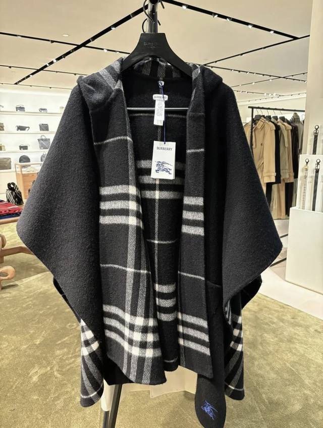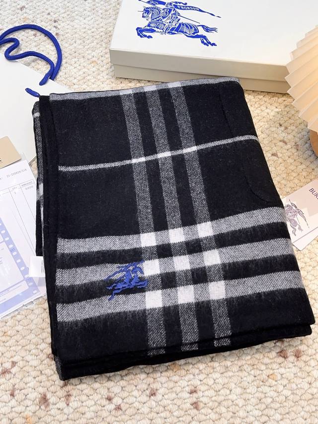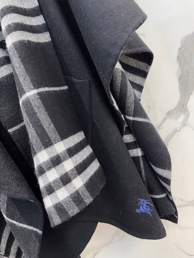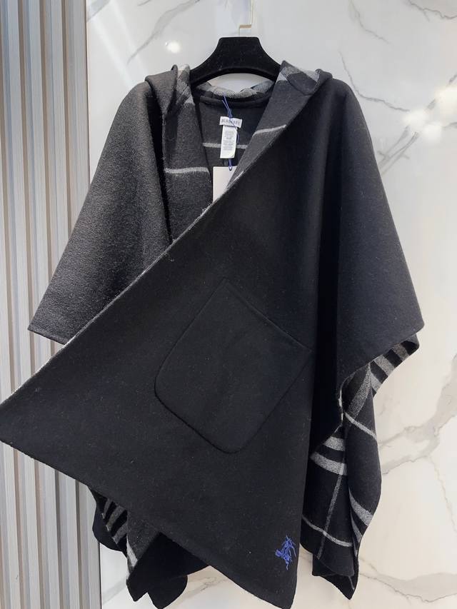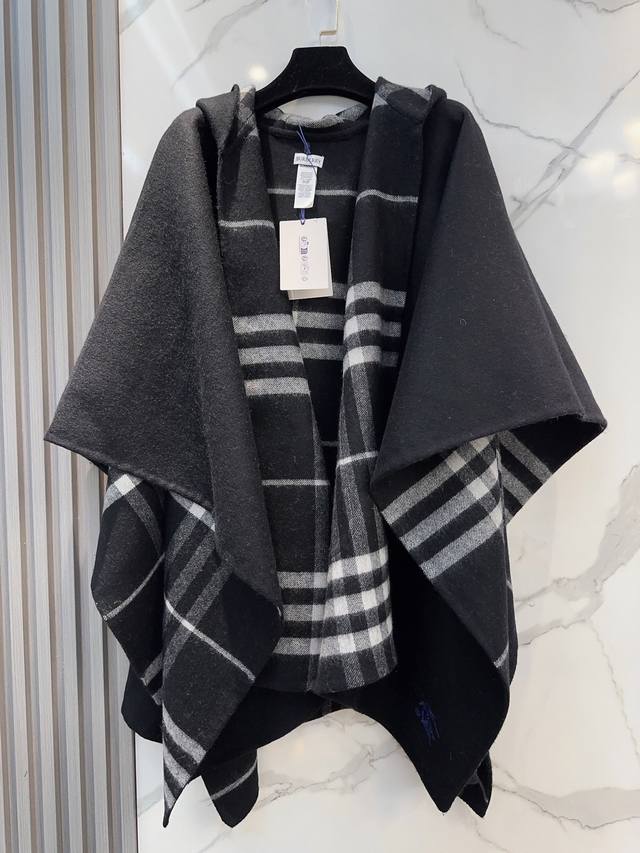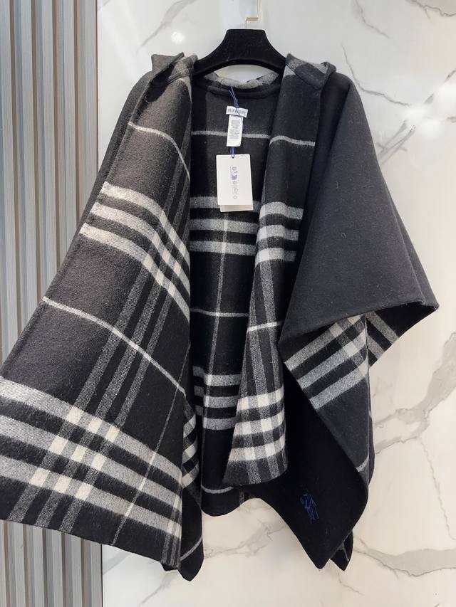 Original handmade trim, Zhang Jingyi's same style cape, Burberry 25th Winter hooded check cape. It has two large pockets, a hood, and a large cape, making it incredibly versatile and stylish. A rare find, this is a must-have item. Super comfortable, soft, and non-itchy, with blue equestrian horse logo embroidery. Made of 100% cashmere, reversible and soft against the skin. It's very substantial and high-quality, as you can see from the pictures. The "wizard hat" style adds a youthful touch. Get your hands on this cape/cape; it's the most practical for autumn and winter. It can be used as a coat, cape, or blanket, offering endless styling possibilities. Size: 176 x 120 cm.