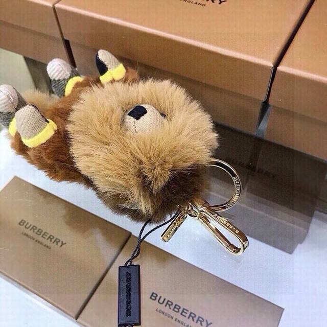 Burberry official website plaid cashmere Thomas Teddy Lion bag charm and keychain.