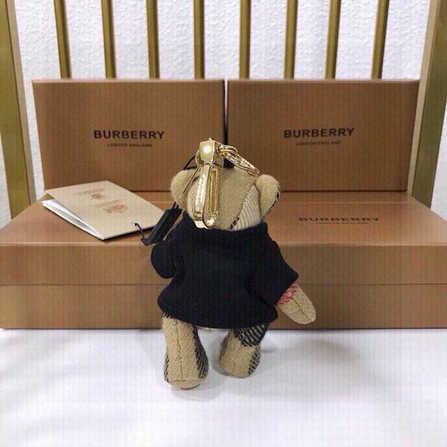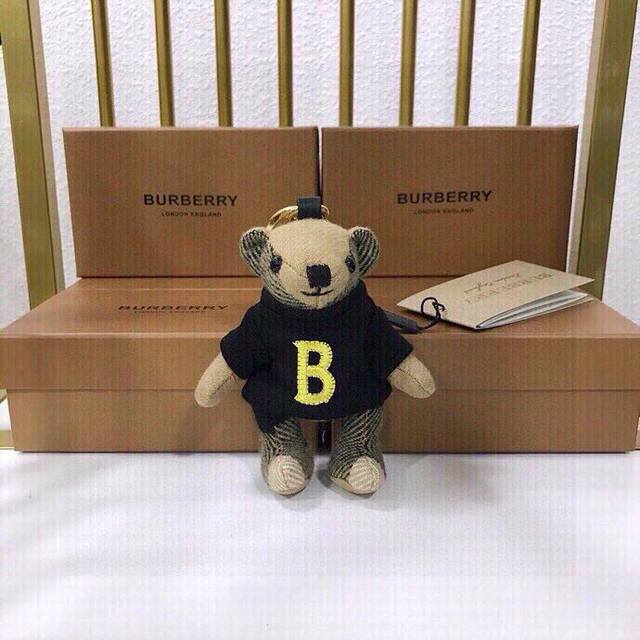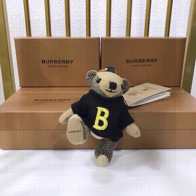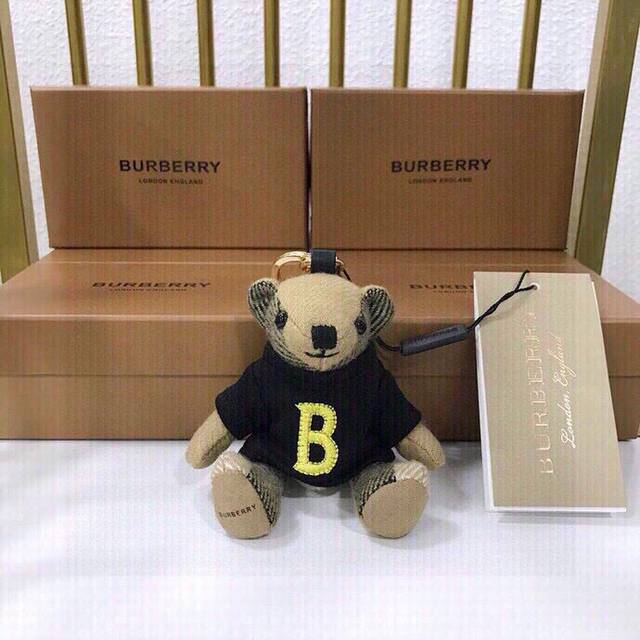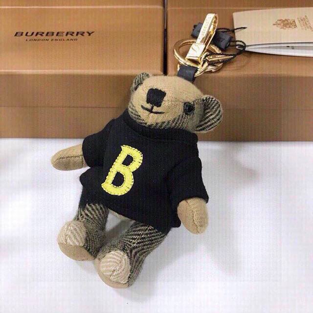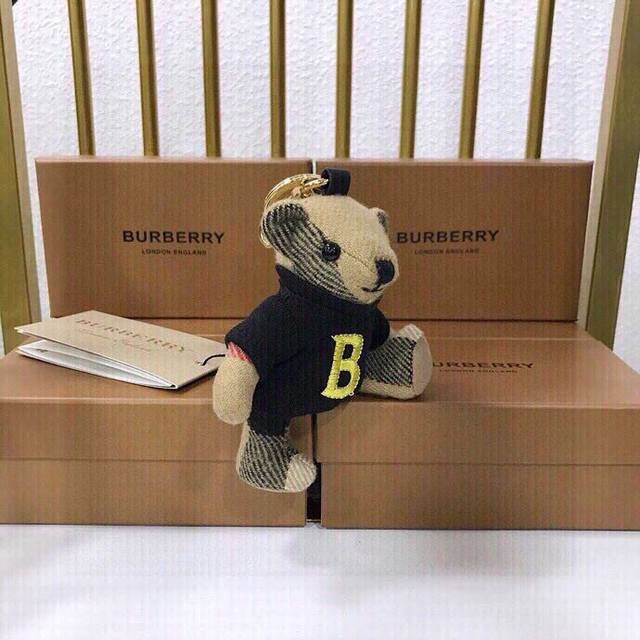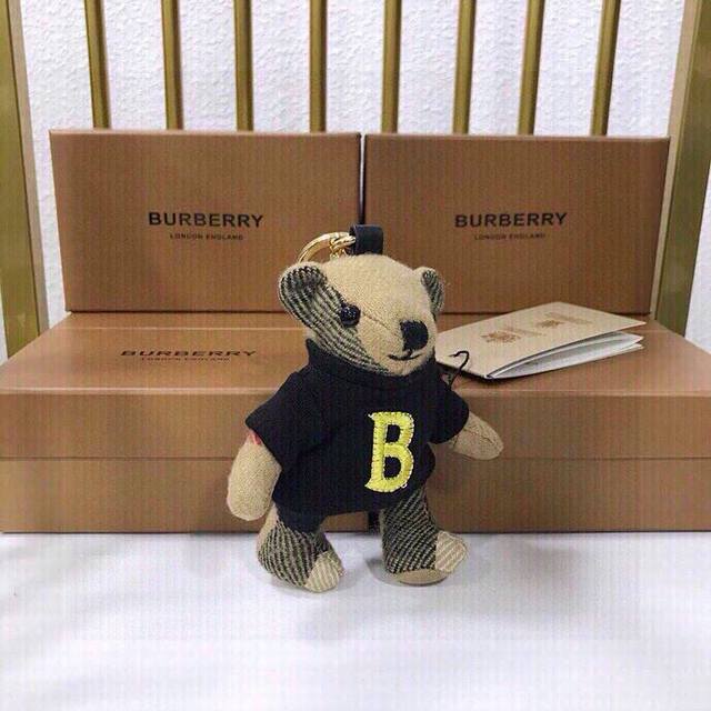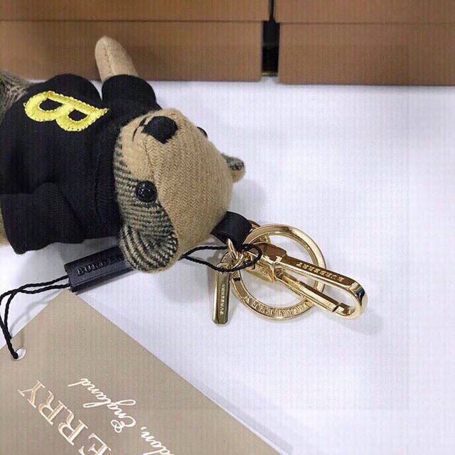 Burberry official website plaid cashmere Thomas Teddy sweatshirt B letter bag charm and keychain.