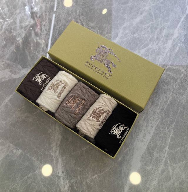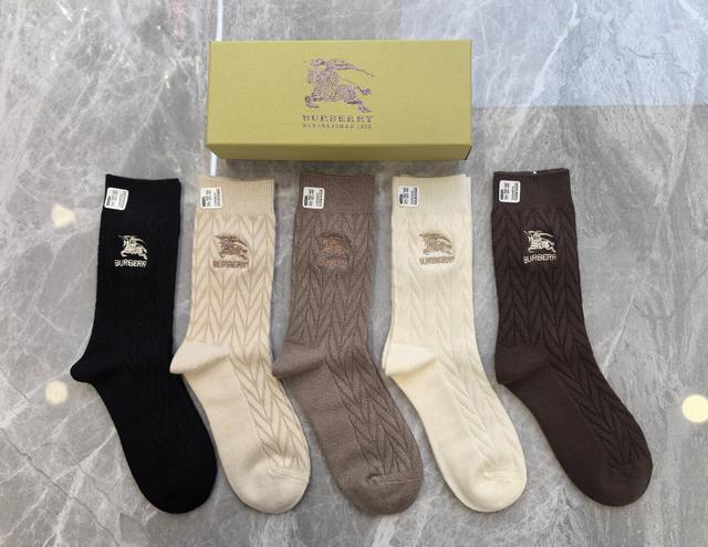 Burberry's new cashmere embroidered mid-length stacked socks! Five pairs per box, counter-synchronized tube socks, big brand out, a must-have for fashionistas, super easy to match.