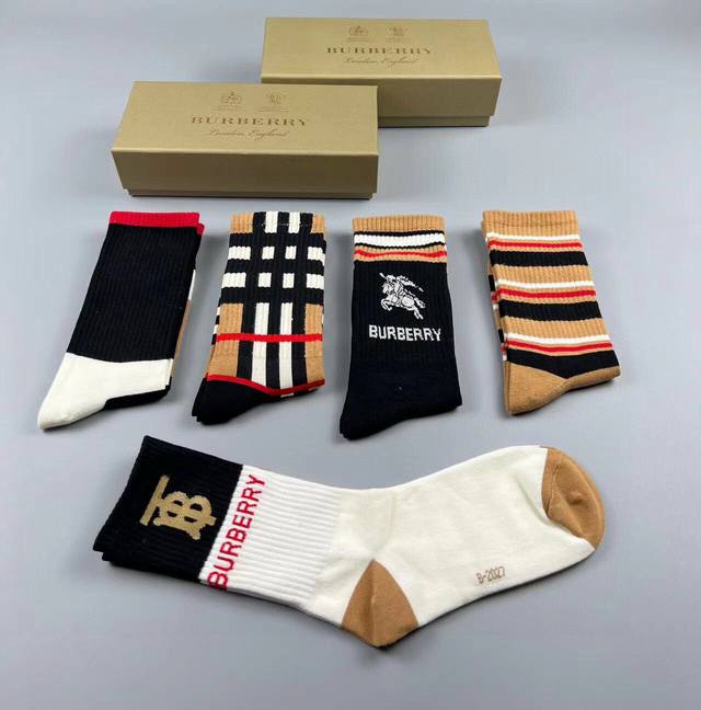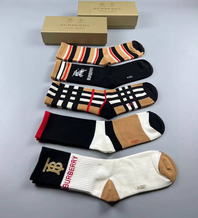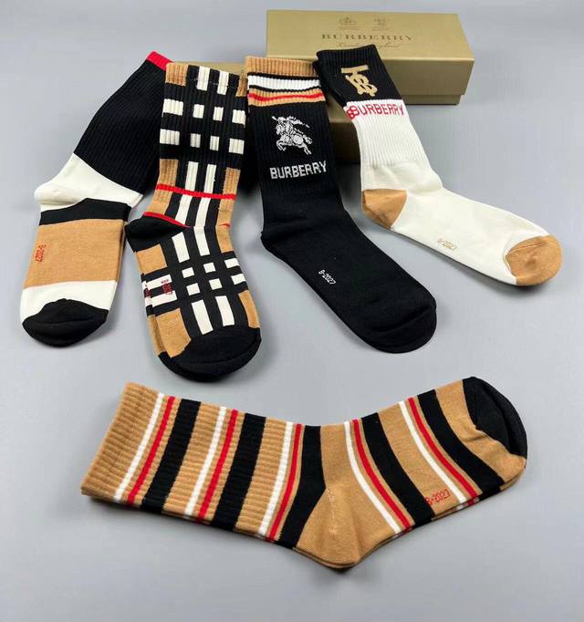 Special Offer: Burberry Women's High Socks, New Arrival (5 pairs per box) - Checkered design with the Pony logo. Simple yet stylish, incredibly beautiful in person. A super popular item, a must-have for trendsetters, and incredibly versatile!
