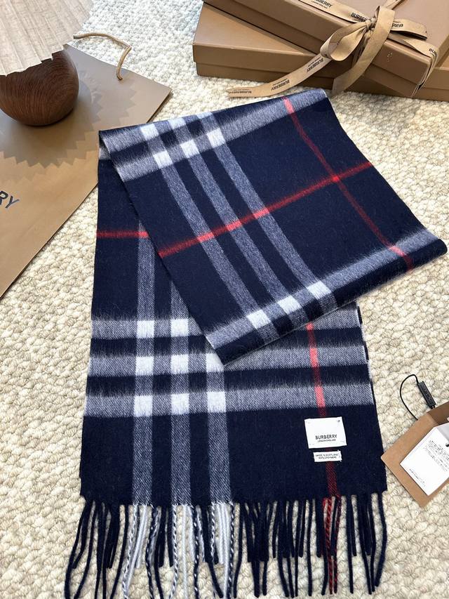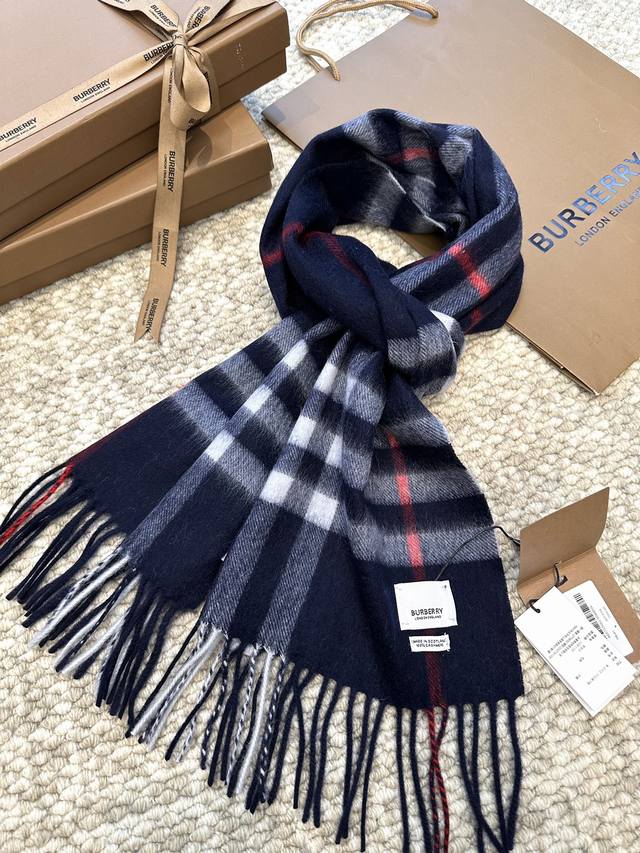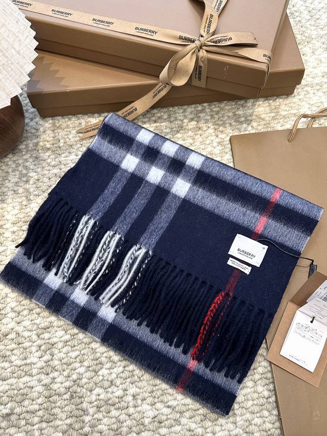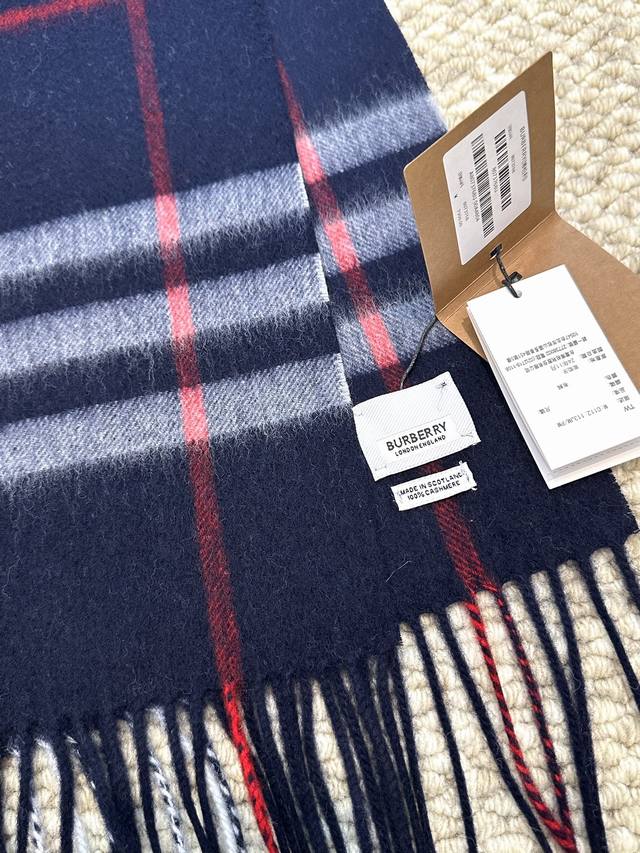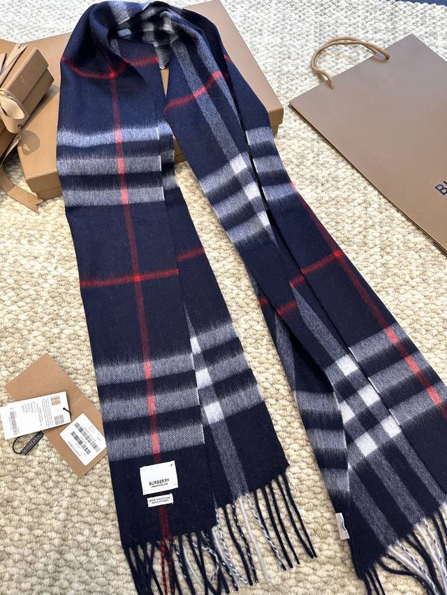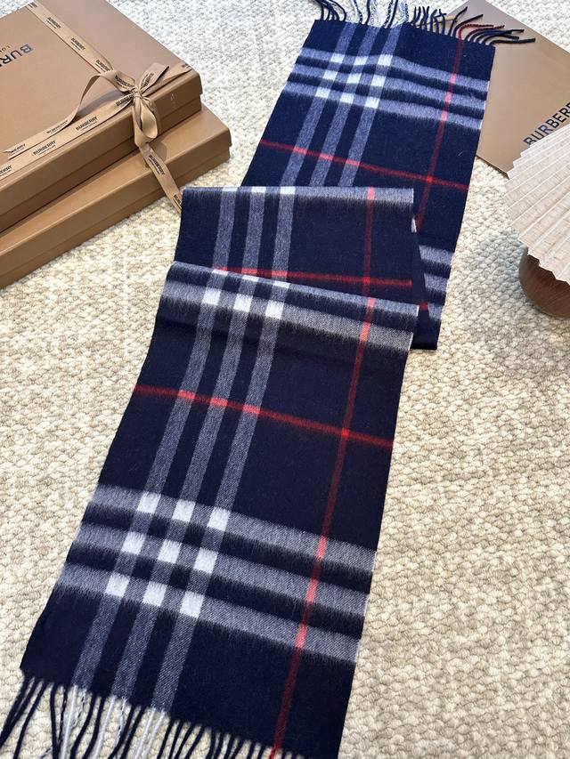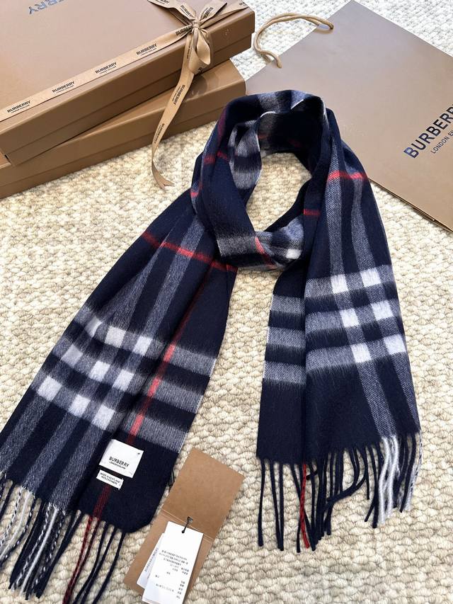 This is Burberry's most classic cashmere check scarf. It completely outclasses any imitations on the market. The entire order uses custom-supplied cashmere, with a dense twill weave and a weight of 160 grams. These international orders have very high requirements for craftsmanship, demanding a high weft density in the fabric, so the drape and density are immediately noticeable to the touch. All colors use imported dyes, resulting in top-notch brightness, color saturation, and vibrancy. 100% cashmere. Dimensions: 30*168cm, 7cm*2 tassels. Grab it without hesitation! (
