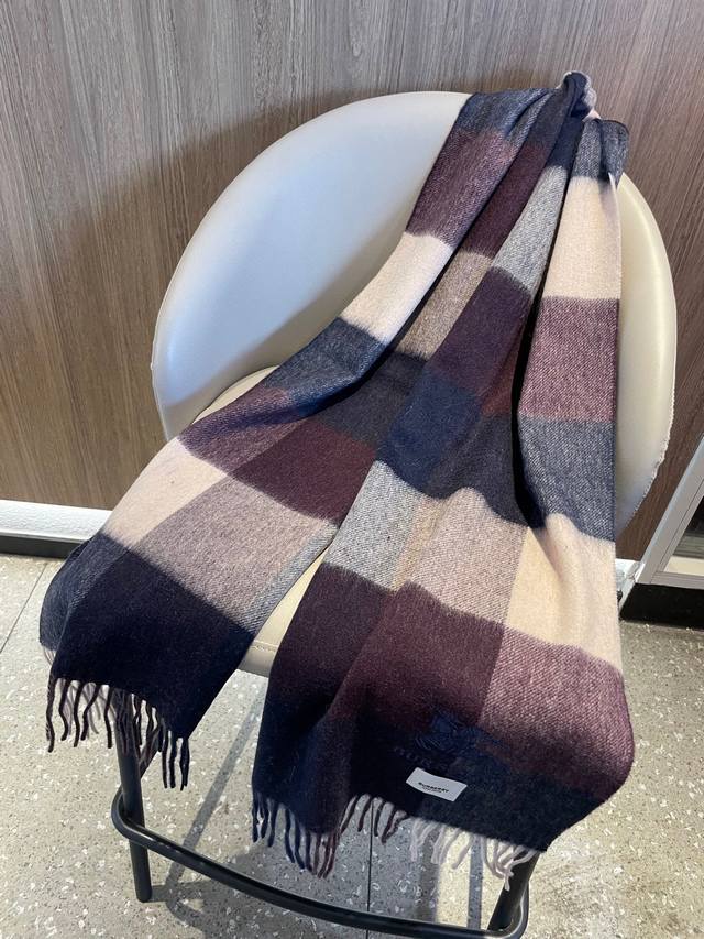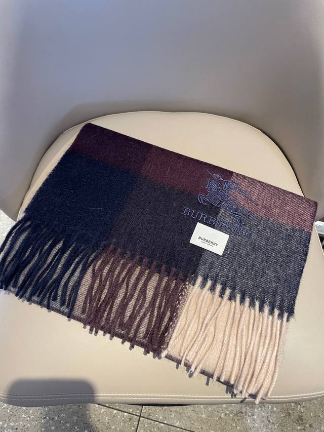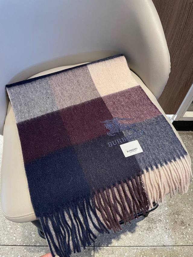 This new Burberry men's checkered premium style features a checkered pattern with the brand's iconic knightly emblem embroidery and "Burberry" label. The fringed edges continue the brand's classic checkered style, making it highly recognizable. Made of wool, it offers excellent warmth, making it suitable for autumn and winter wear. It can be paired with various styles of clothing, enhancing both style and warmth. Size: 30*