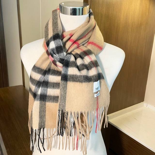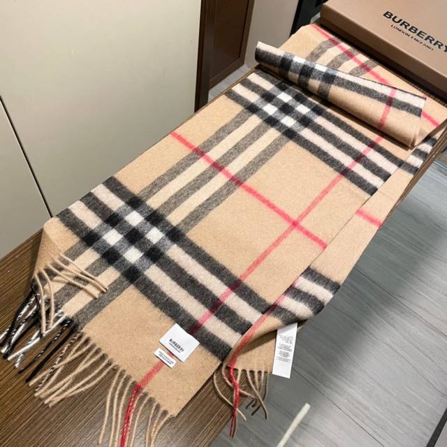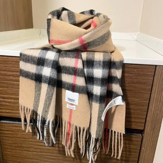 Top-rated Burberry classic cashmere check scarf, latest condition from the boutique. The boutiques have all switched to the new label, a true classic. This is top-quality; all other imitations pale in comparison. Made of genuine pure cashmere, this export-grade scarf has always been our top-rated series, a must-have for countless fans. Every woman should get one for herself