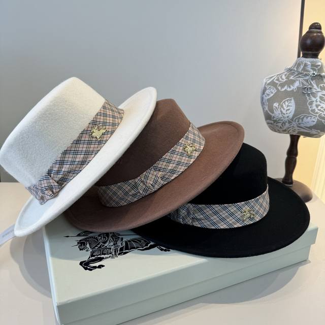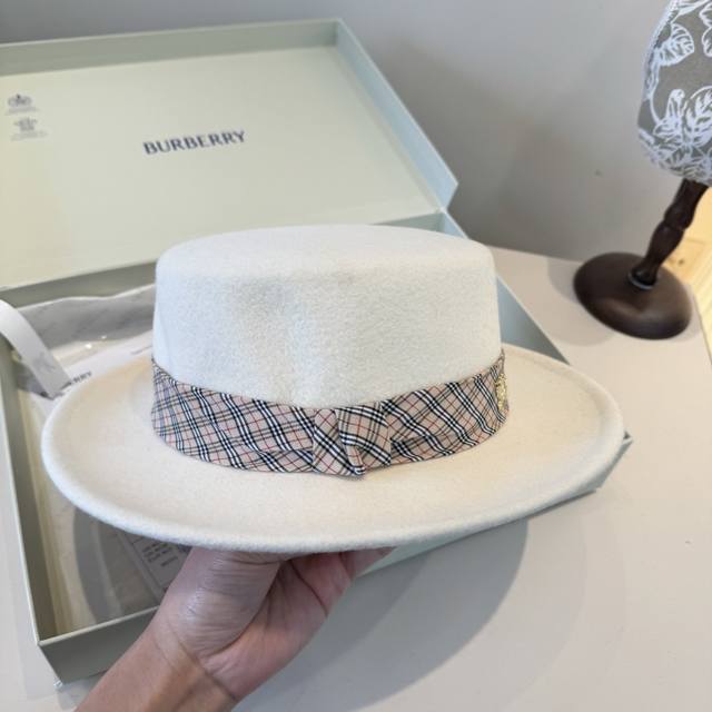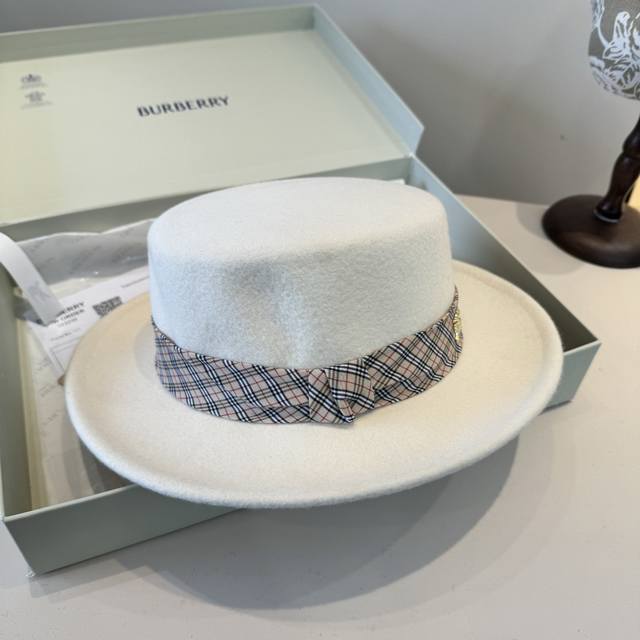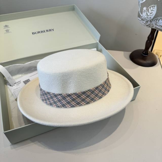 / White Burberry Fall/Winter New Wool Hat, Flat Top Hat, 100% Wool Fabric, Head C