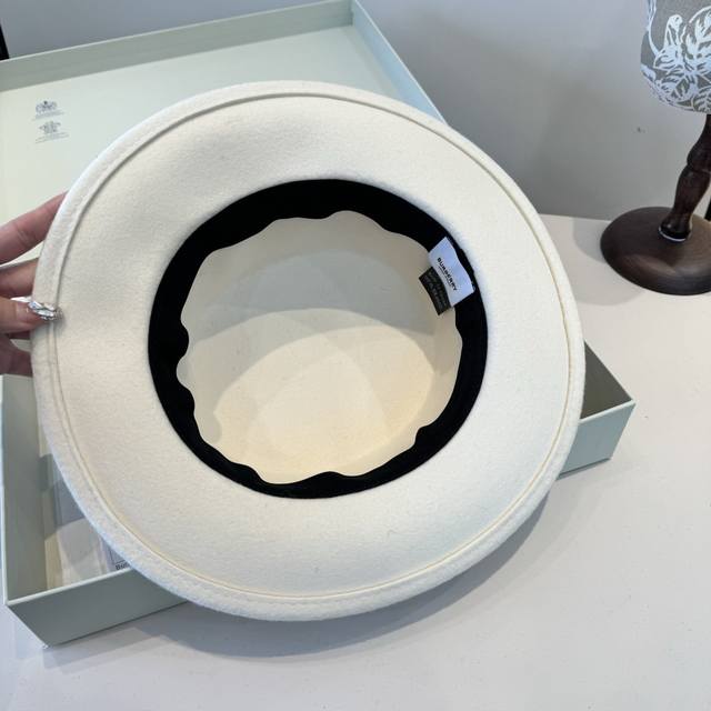 White DDD Burberry Fall/Winter New Wool Hat, Flat Top Hat, 100% Wool Fabric, Head Circumference 57cm DDD