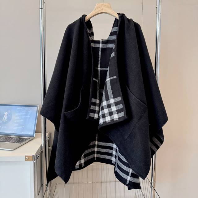 Zhang Jingyi's same style shawl, full of atmosphere! DDD A rare and highly sought-after Burberry piece! DDD Get your shawl/cape now! The number one practical item for autumn and winter, it can be used as a coat, cape, or blanket. Versatile styling. Noble and elegant. Super practical and looks good no matter how you style it. 100% cashmere fabric, delicate, soft and comfortable. Size: 176