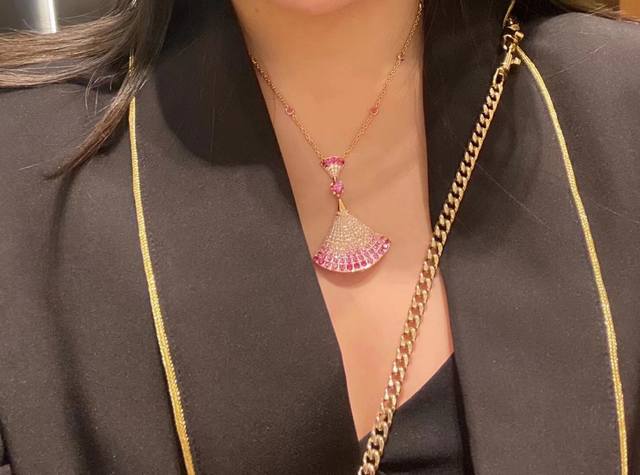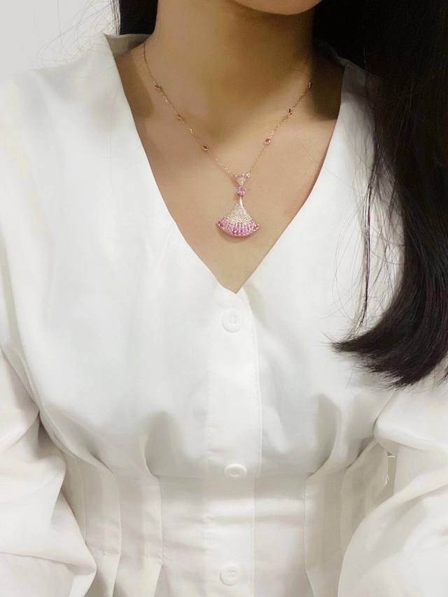 We produce Bulgari mini dresses and large necklaces (Zp300,000+). Beware of the only supplier that genuinely purchases and develops genuine jewelry products. Custom orders for real gold and diamonds are available. We only produce authentic genuine gold items, surpassing various gold products on the market. Large quantities available upon request. The Divas' Dream necklace embodies Italian elegance and charm, releasing feminine power with a mysterious and unforgettable aura. This captivating and exquisite jewelry piece features a fan-shaped pattern, inspired by the mosaic decorations of the Baths of Caracalla in Rome. Its modern design and the brilliance of precious gemstones highlight Bulgari's historical connection with the "Eternal City," Rome. The Divas' Dream necklace is made of 18K rose gold, set with a central round pink sapphire and two round pink sapphires, adorned with pav