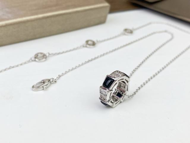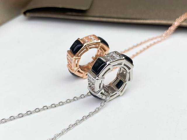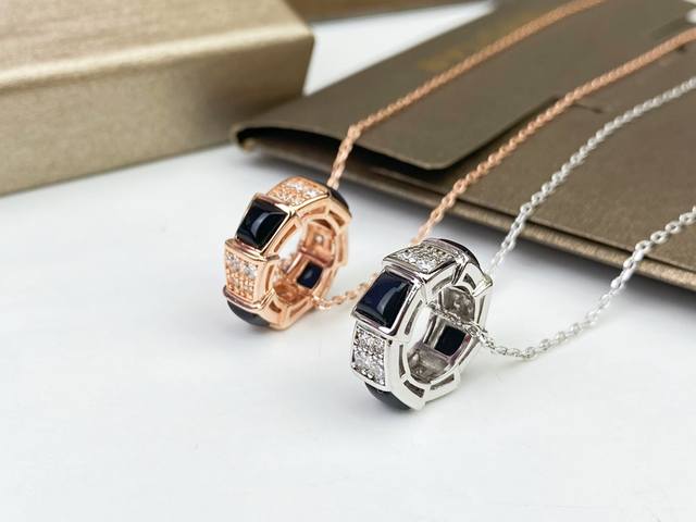 Bulgari Black Onyx and Diamond-Set Snake Pendant Necklace. The interplay of black onyx and diamonds exudes elegance. High-end custom-made, original piece, plated with 18K rose gold and white gold. Featuring Bulgari's classic snake pattern and original clasp craftsmanship.