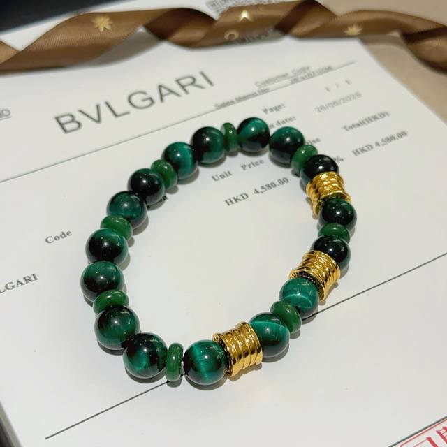 Bulgari Divas' Dream bracelet in V gold. This natural tiger's eye bracelet is in perfect condition, with impeccable details. The unique color is flawless, and the classic ring design adds a touch of understated elegance. The handcrafted V gold finish enhances your complexion, making it a refined and captivating piece. Unisex Bulgari bracelet size: 18 x 20 x 22 x 24 cm.