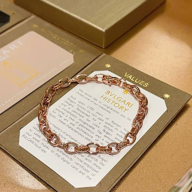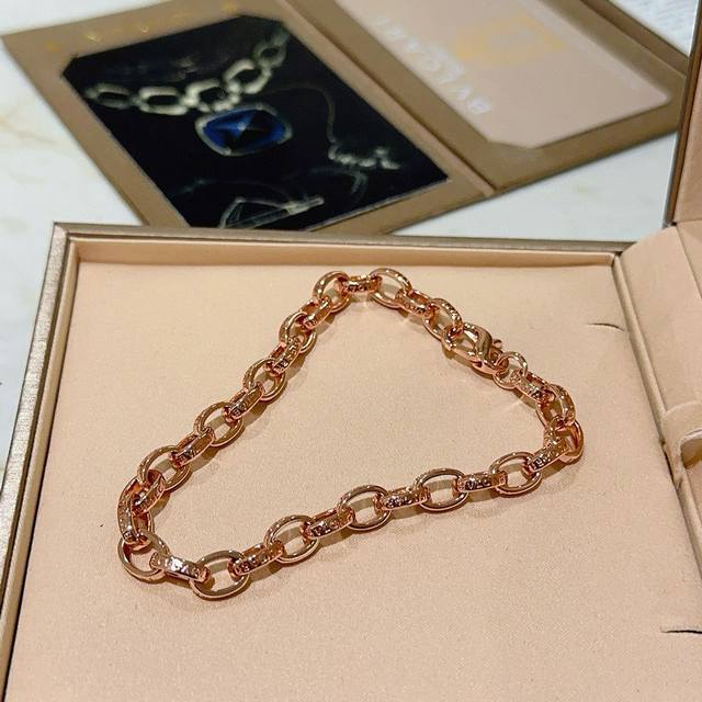 Bulgari Divas' Dream bracelet, made of V-gold, is impeccable in appearance and detail. Its unique color is impeccable, and its classic ring design creates a simple yet elegant and striking bracelet. The handmade V-gold bracelet enhances the complexion and creates a graceful and charming touch. Unisex style, 16-25cm