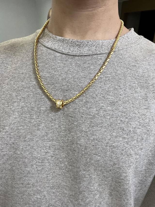 Bulgari necklace in V gold. From the Bulgari Divas' Dream collection, this necklace is in perfect condition with impeccable details. The unique color is flawless, and the classic ring design adds a touch of understated elegance. The V gold finish enhances the complexion, making it a refined and captivating piece. Unisex Bulgari necklace.