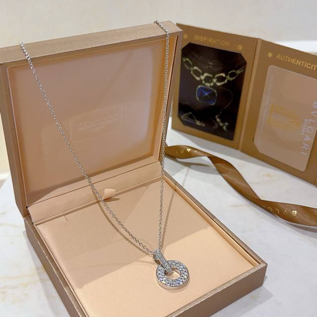 Bulgari necklace made of V gold. The Bulgari Divas' Dream collection is impeccable in appearance and detail, with a unique, impeccable color. Adorned with a classic ring design, it is simple yet elegant and striking. The rose gold combination further enhances the complexion, creating an elegant and charming look. Unisex Bulgari necklaces are available for both men and women.