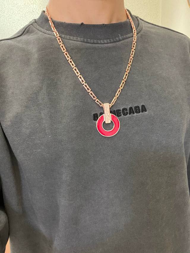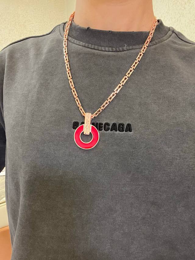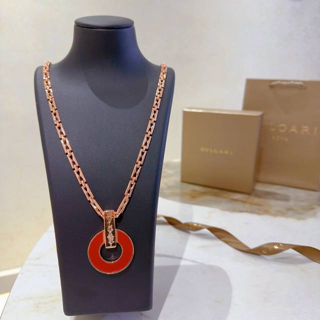 Bulgari necklace made of V gold. The Bulgari Divas' Dream collection is impeccable in appearance and detail, with a unique, impeccable color. Adorned with a classic ring design, it is simple yet elegant. The combination of platinum and diamonds further enhances the complexion, creating an elegant and charming look. Unisex Bulgari necklace