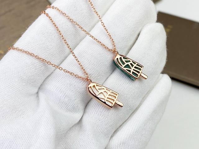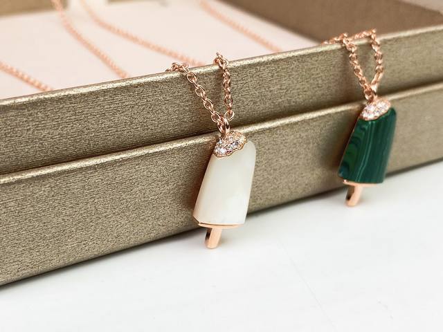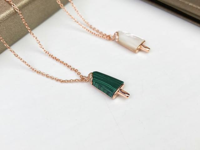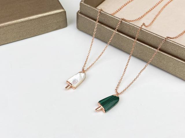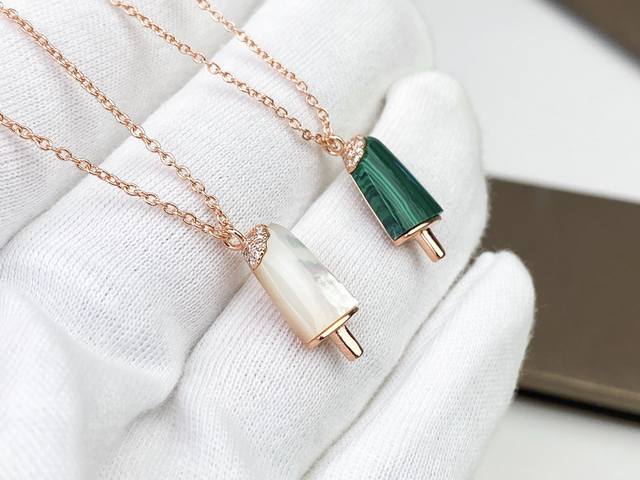 Bulgari Popsicle Necklace. The lifelike white mother-of-pearl and malachite are exquisitely cut and the design is elegant and luxurious. The original logo is replicated, and the combination of the exquisite white mother-of-pearl, malachite, and high-carbon diamonds is simply stunning! Extremely comfortable to wear. (Batch ID: