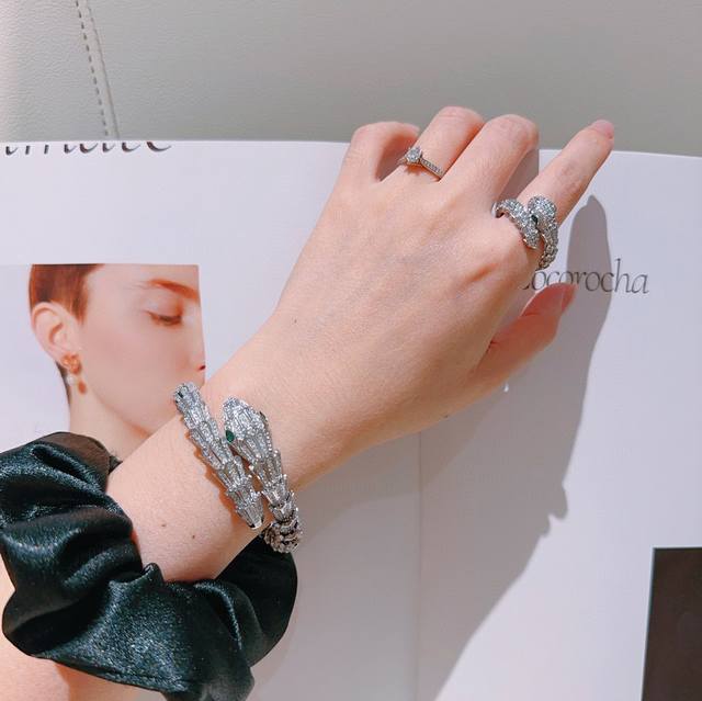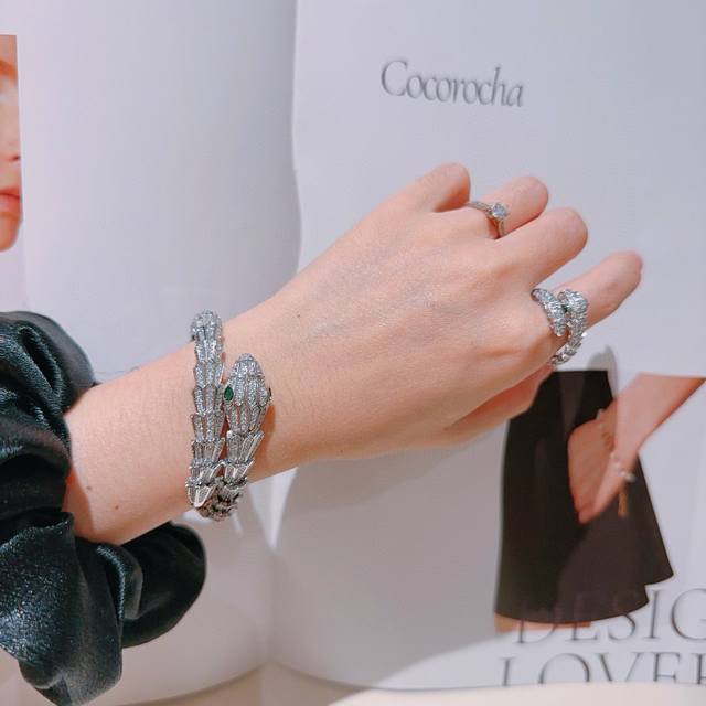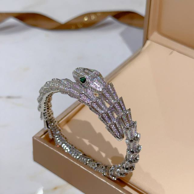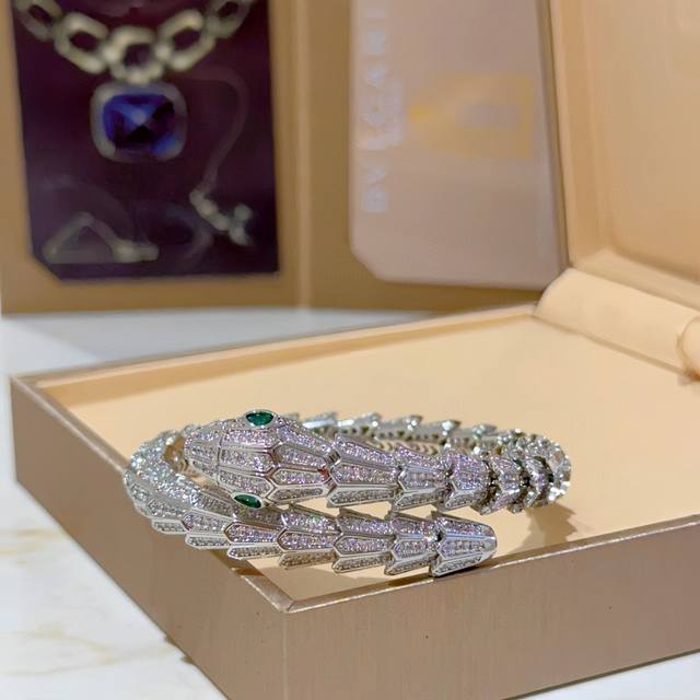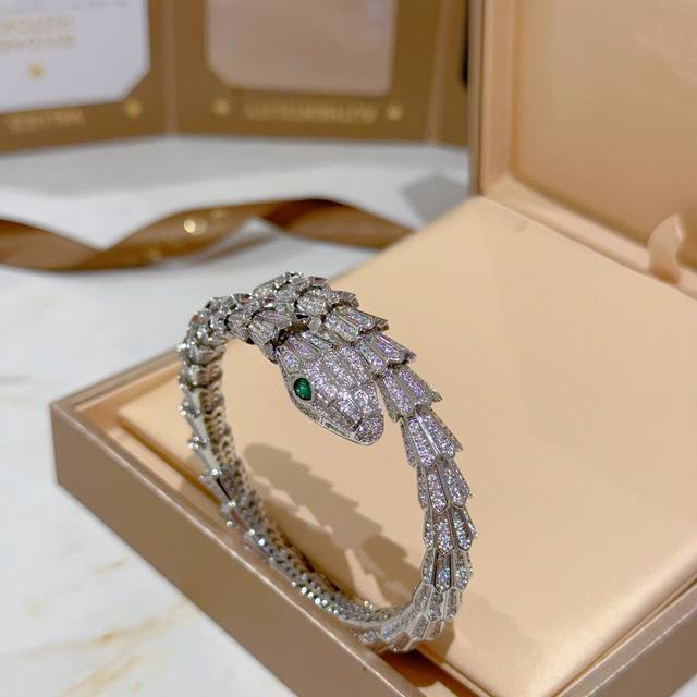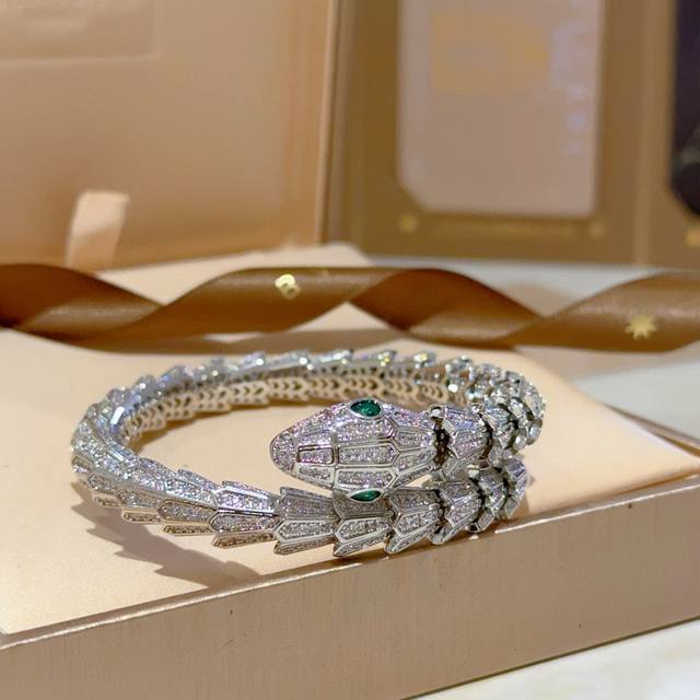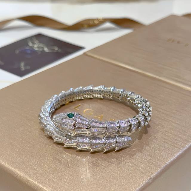 Bulgari Serpenti Viper bracelet, a snake bone bracelet, crafted from perfectly polished V-gold, seamlessly blends with the metal rim! Filled with allure and captivating sensuality, the brilliance and luxury of diamonds showcases unparalleled beauty and power, offering a fresh perspective and interpreting the inherent multifaceted qualities of the serpent, its sprawling, curving form showcasing its elegant and alluring beauty!