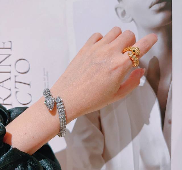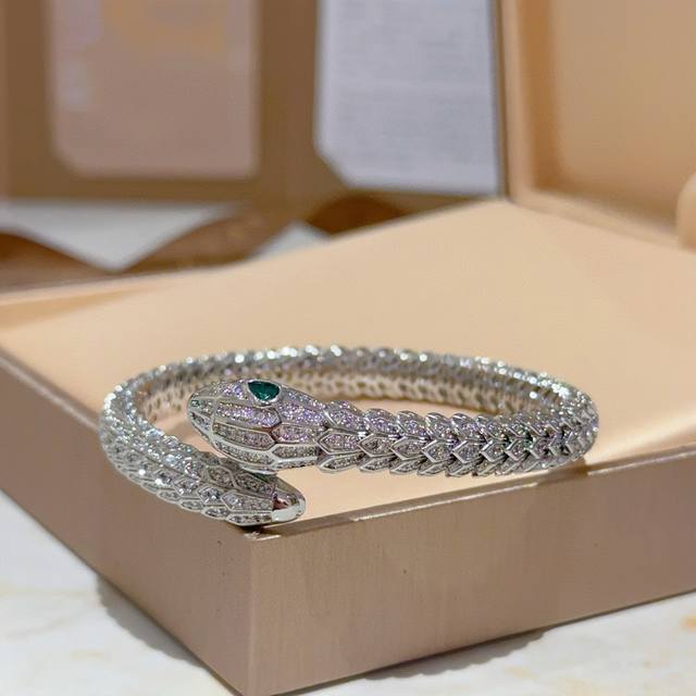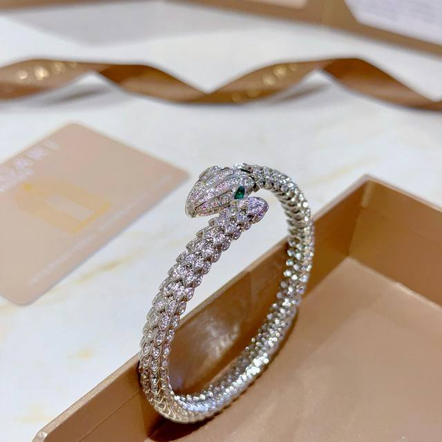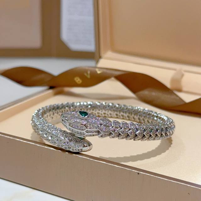 Bulgari Serpenti Viper bracelet, meticulously crafted in V-gold, perfectly complementing the metal edges! Full of allure and captivating sensuality, the dazzling luxury of diamonds presents unparalleled beauty and power, giving you a completely new perspective and interpreting the multifaceted nature of the serpent, its winding and curving lines showcasing its elegant and seductive beauty !